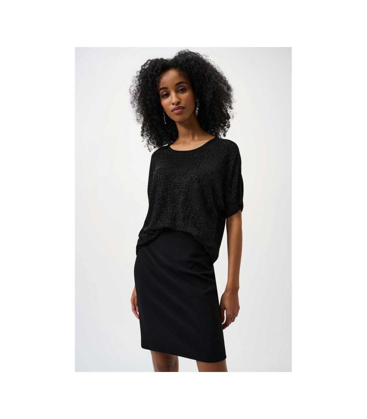 Falda básica, color negra, tubo, tejido punto de seda y con cintura elástica, de la marca canadiense Joseph Ribkoff.
