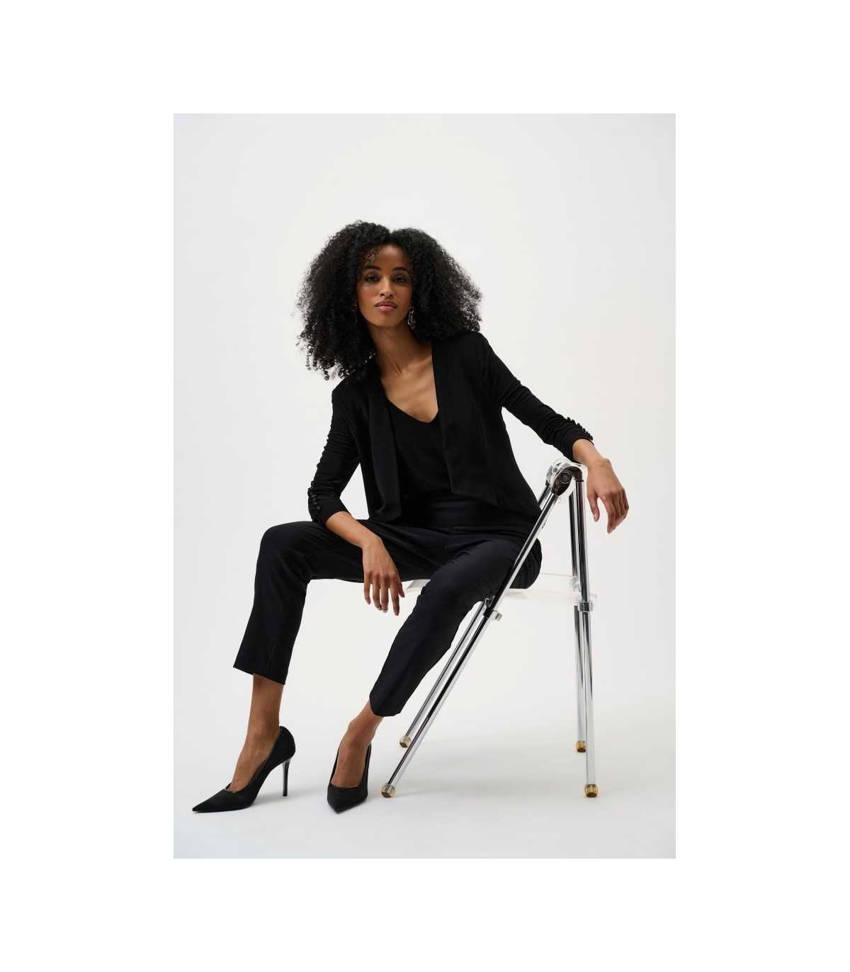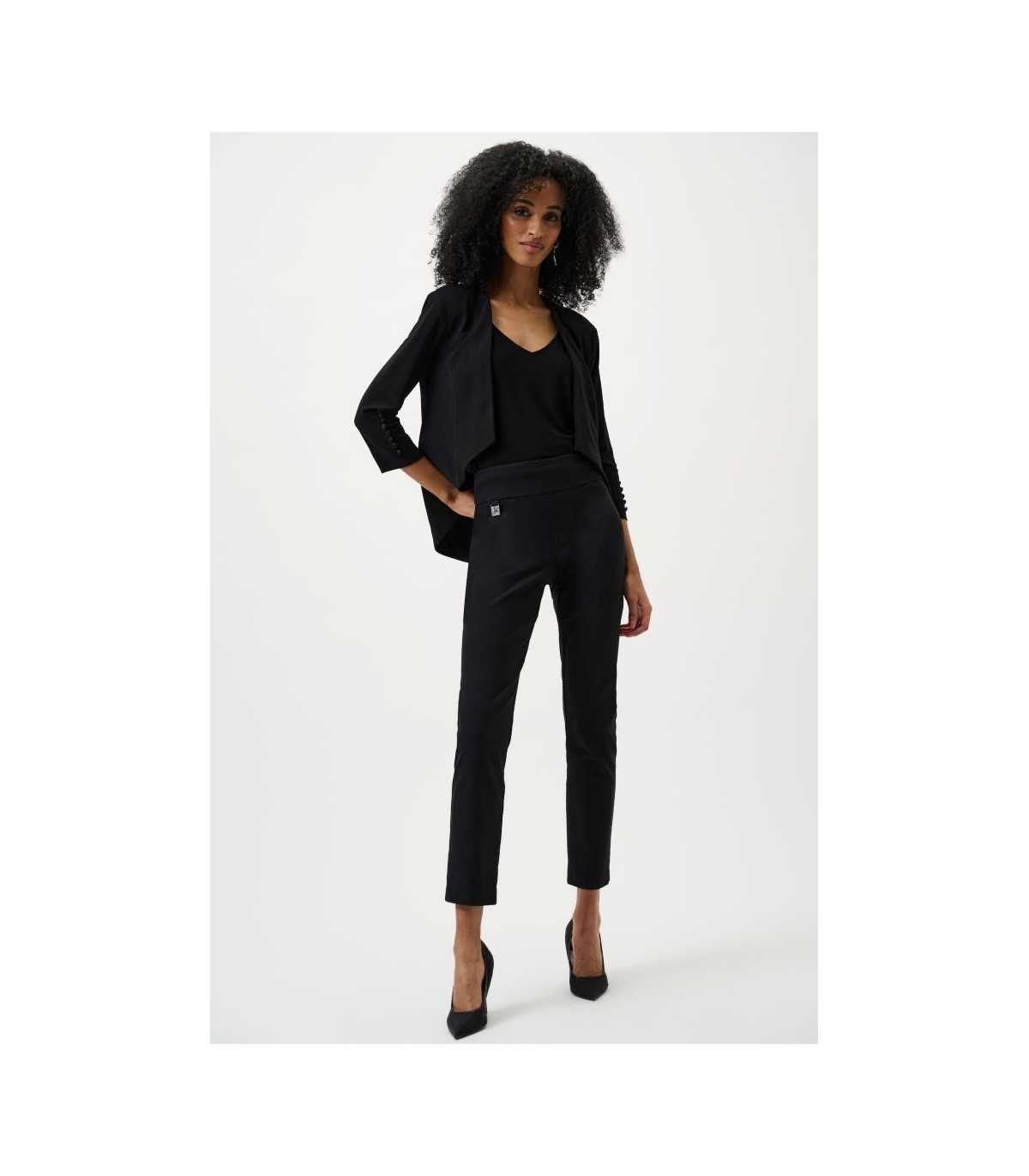 Pantalón básico con cintura elástica, color negro, sin bolsillos ni cremallera, de la marca canadiense Joseph Ribkoff.