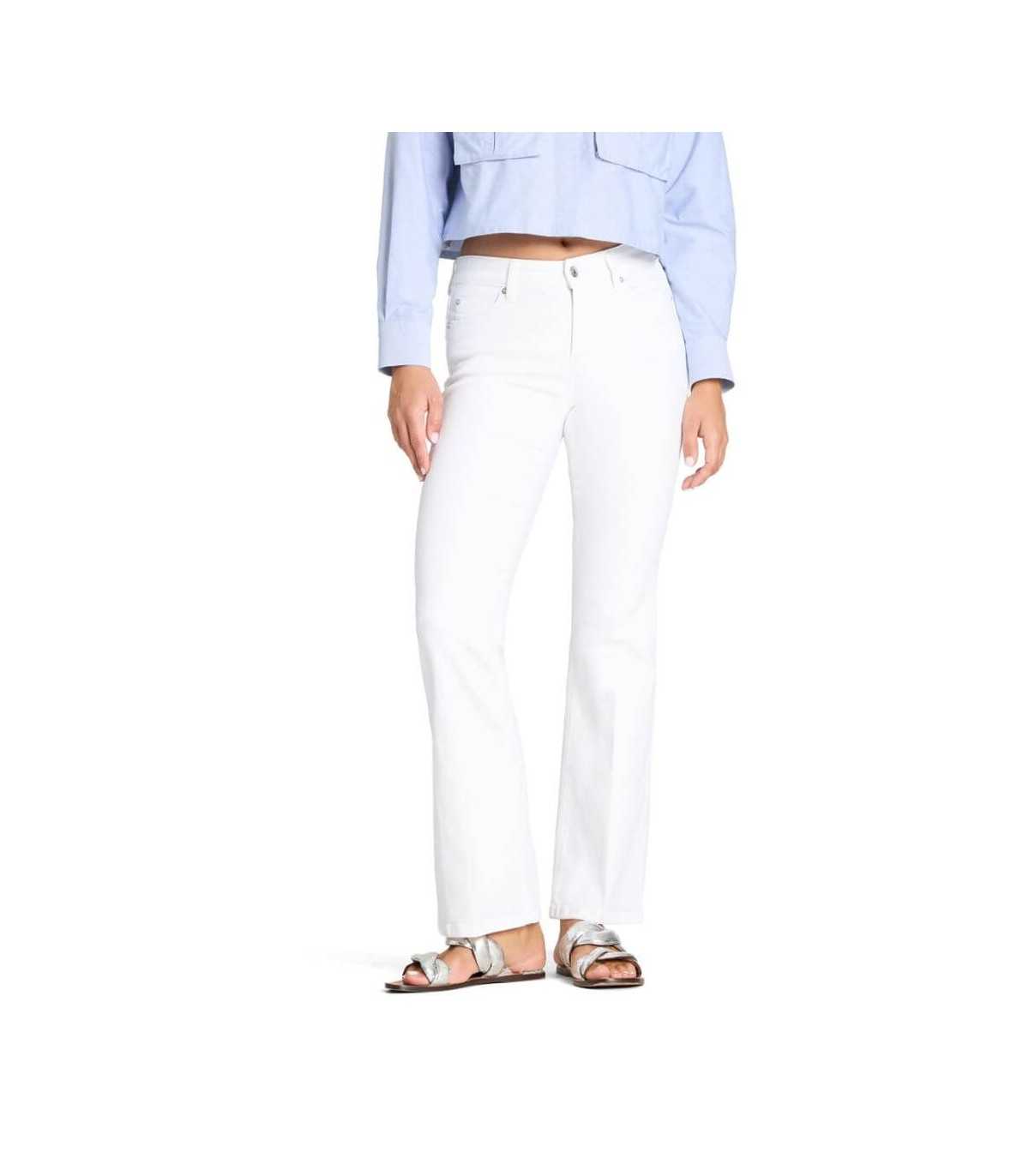 Pantalón vaquero campana color blanco, tejido confort super strech y cinco bolsillos, de la marca alemana Cambio.