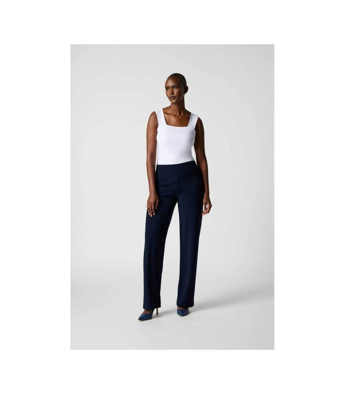 Pantalón color marino, corte recto y cintura elástica, de la marca canadiense Joseph Ribkoff.