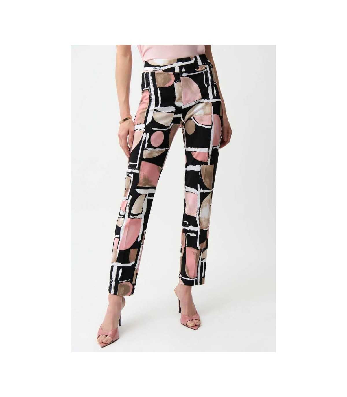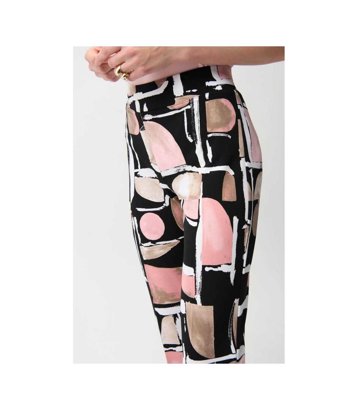 Pantalón en tejido de punto, corte recto, estampado abstracto y cintura elástica, de la marca canadiense Joseph Ribkoff.