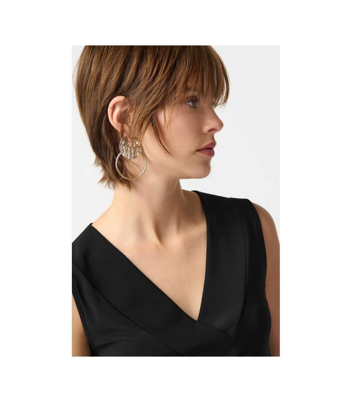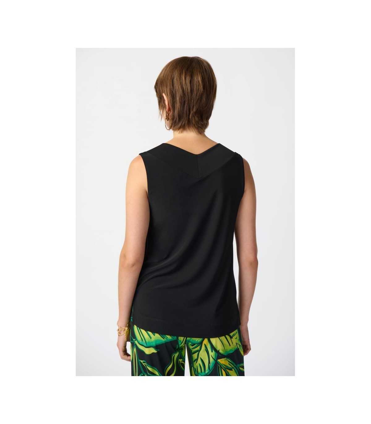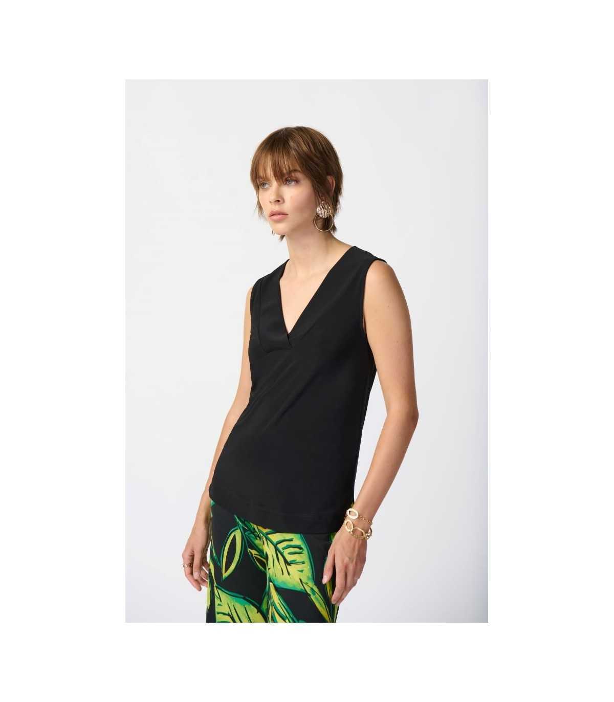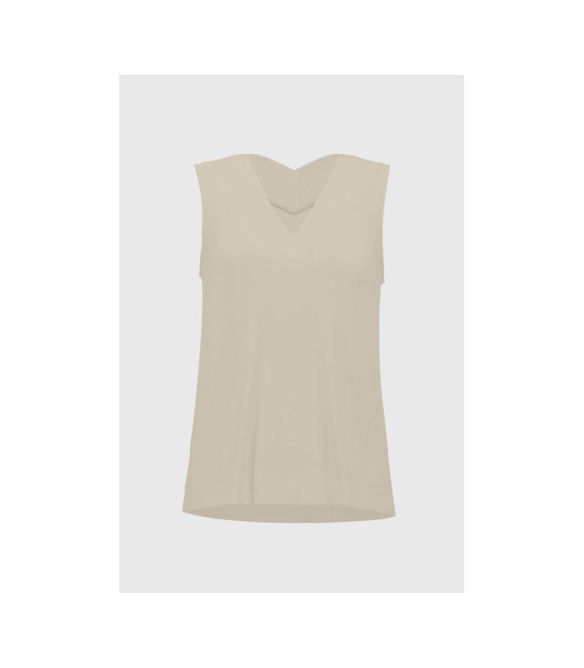 Top sin mangas en color beige, tejido punto de seda, escote en forma de v y silueta recta, de la marca canadiense Joseph Ribkoff.
