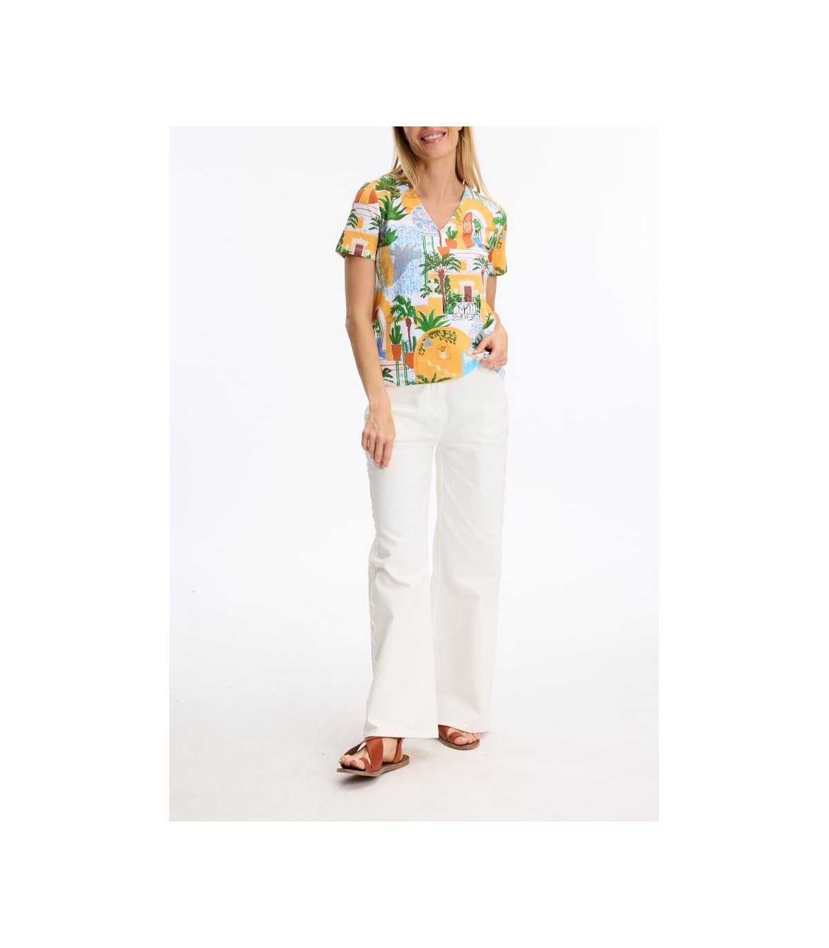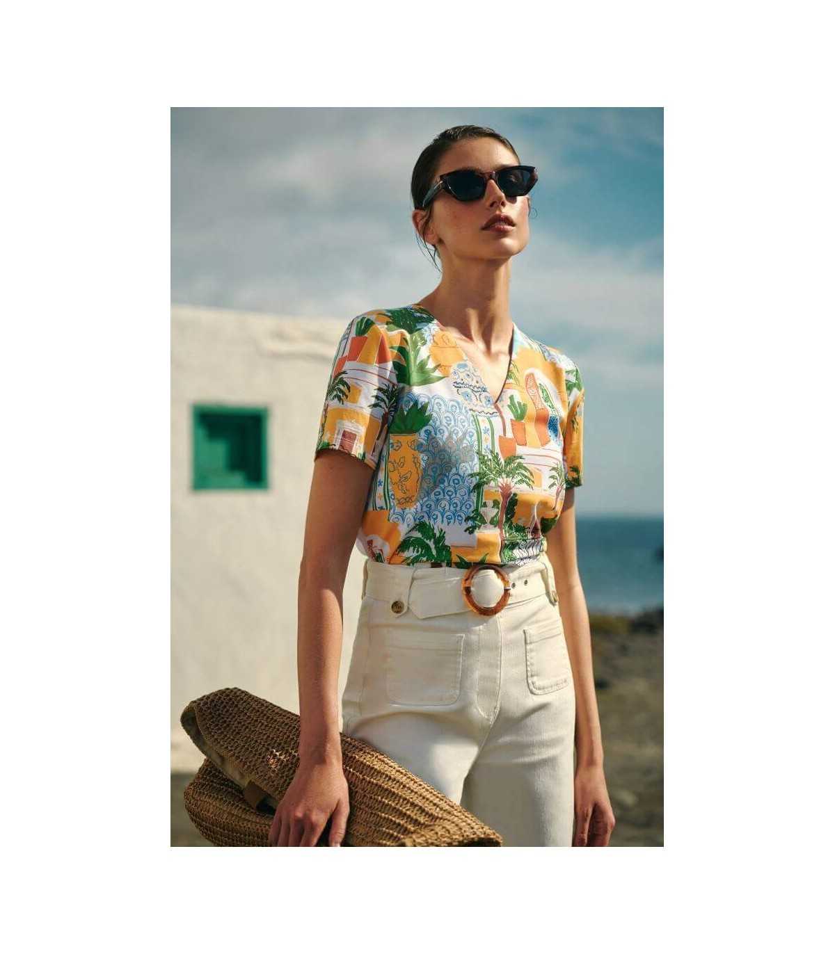 Camiseta estampada de paisaje y plantas, manga corta y escote de pico, de la marca francesa Leo&Ugo.