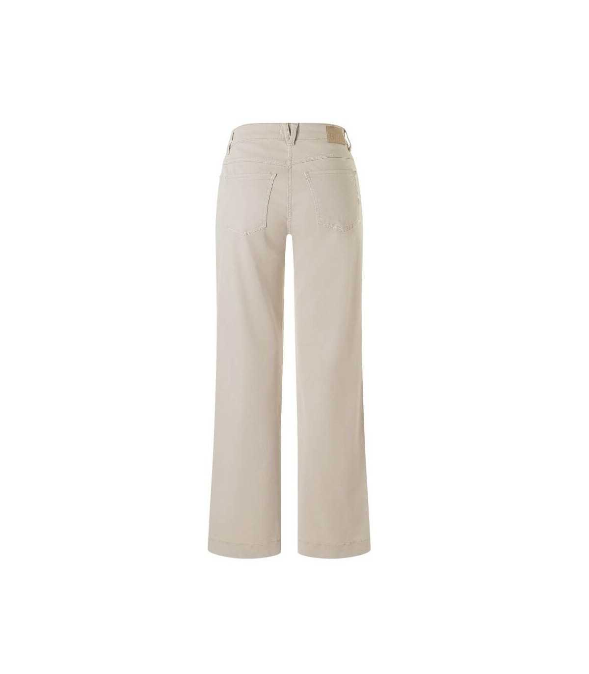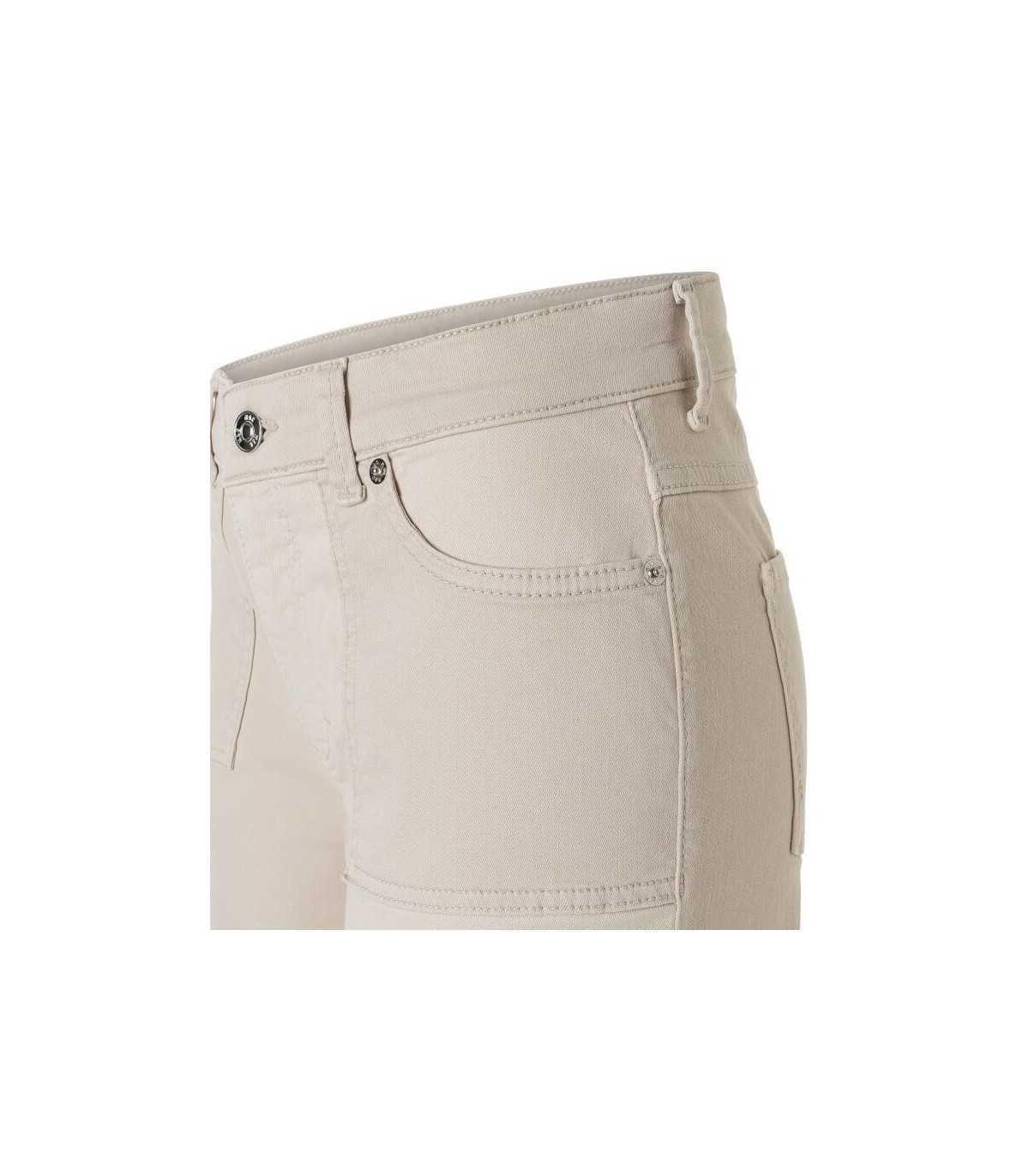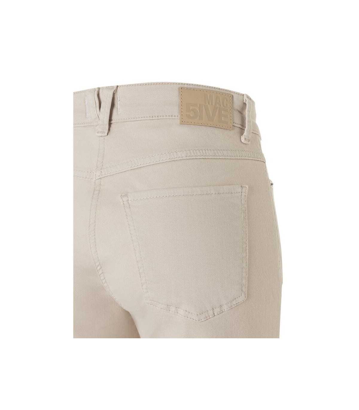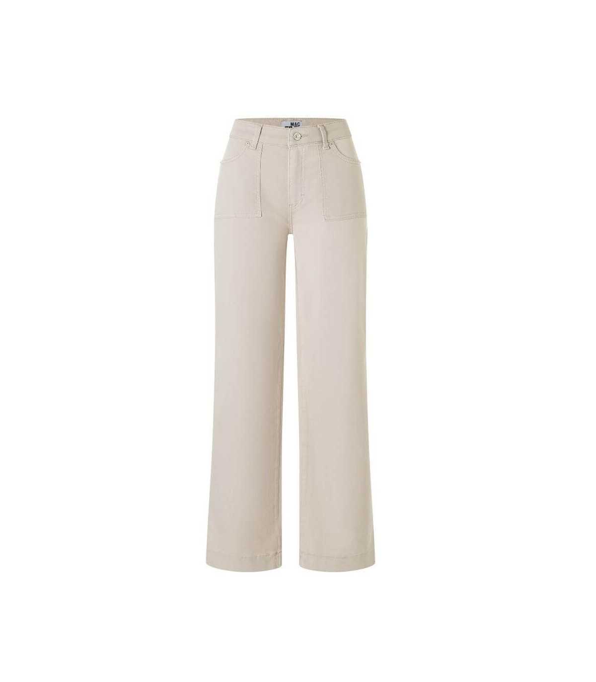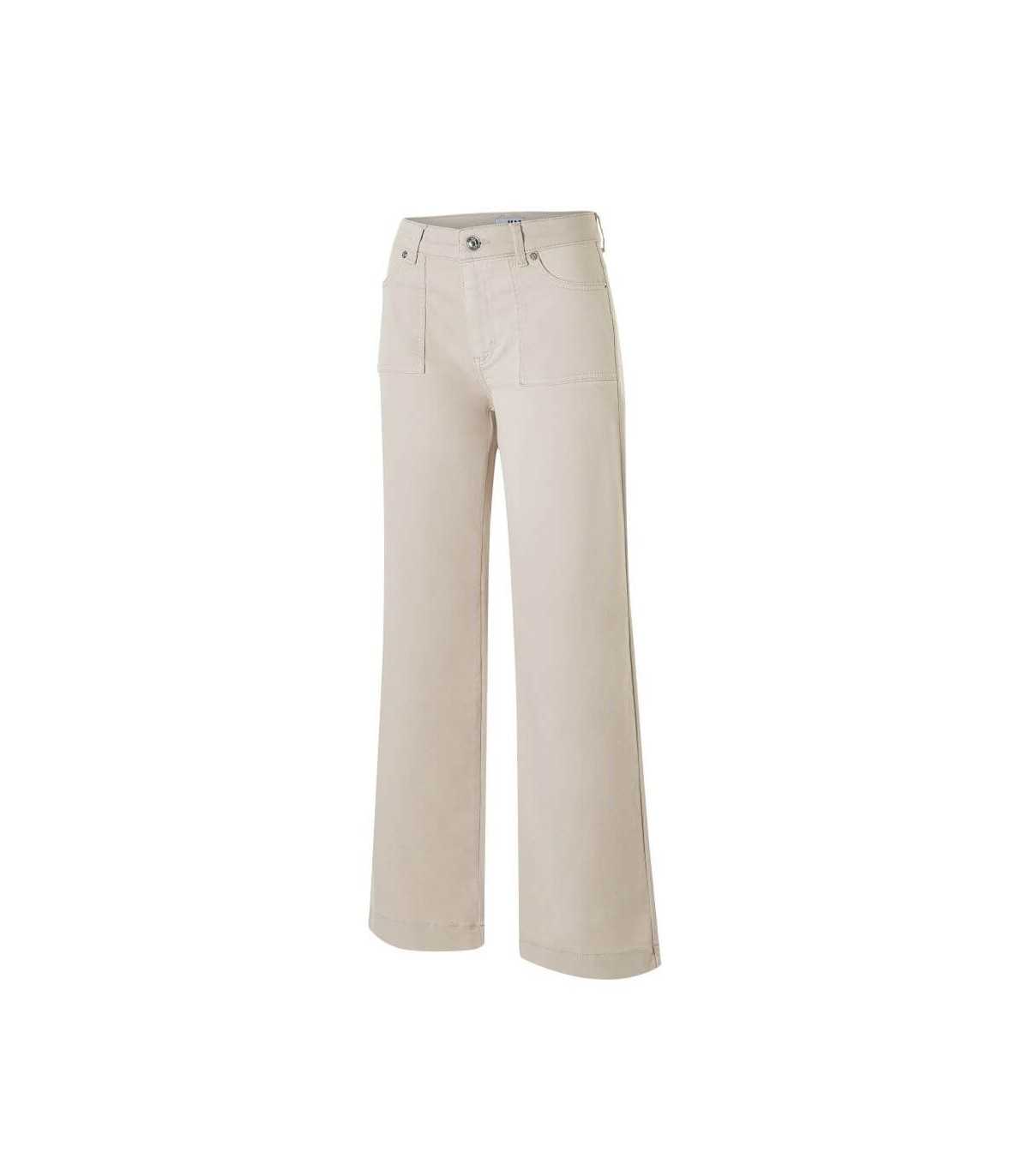 Pantalón vaquero ancho, color beige, pierna recta y ancha, gran comodidad al uso, efecto moldeador y cierre delantero de botón y cremallera, de la marca alemana Mac.
