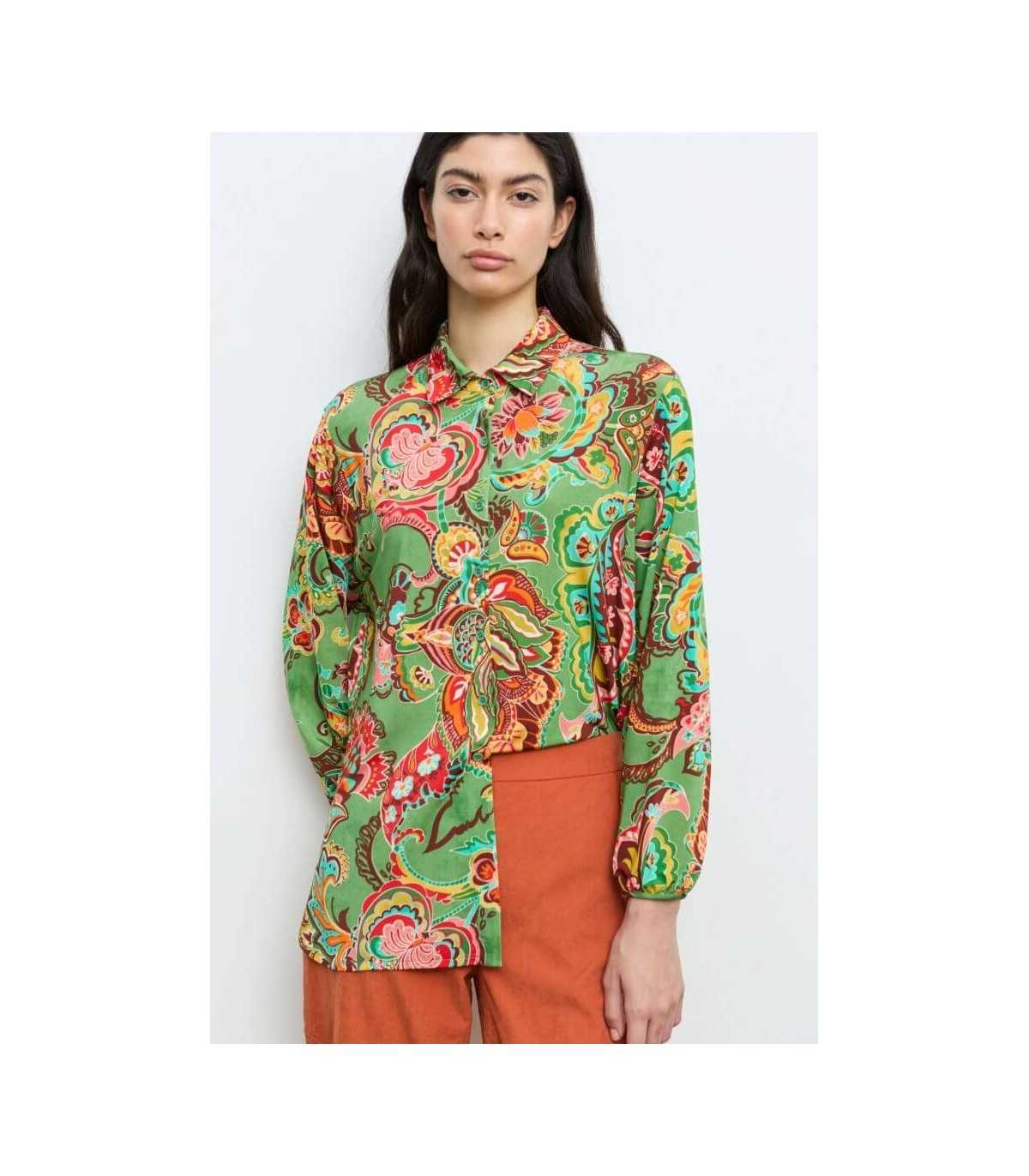 Camisa en tejido de punto de seda, estampado de cachemir, manga larga, cierre de botones, línea recta con aberturas laterales y puntas redondeadas, de la marca española Aldo Martins.