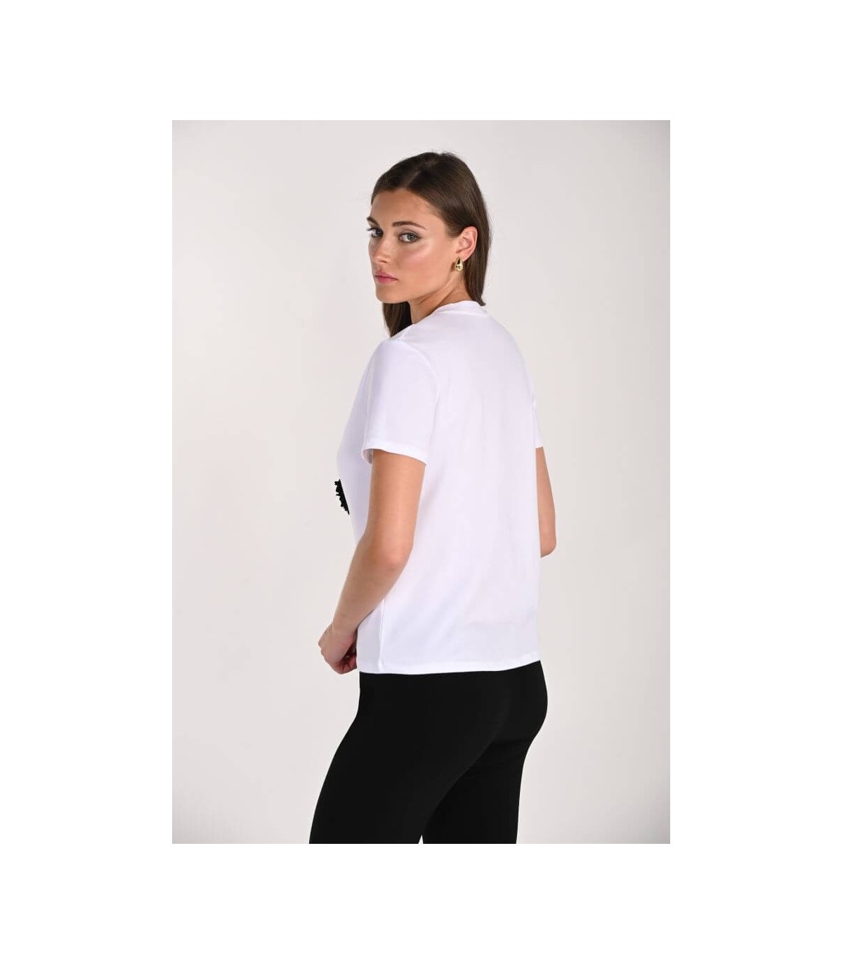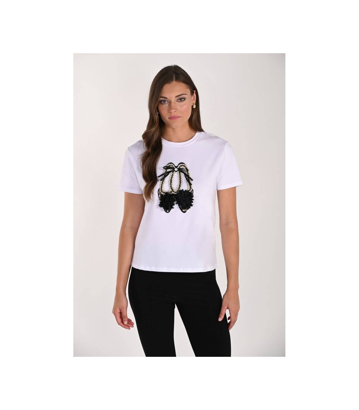 Camiseta en color blanco con adorno de zapatos, cuello redondeado y manga corta, de la marca canadiense Frank Lyman.
