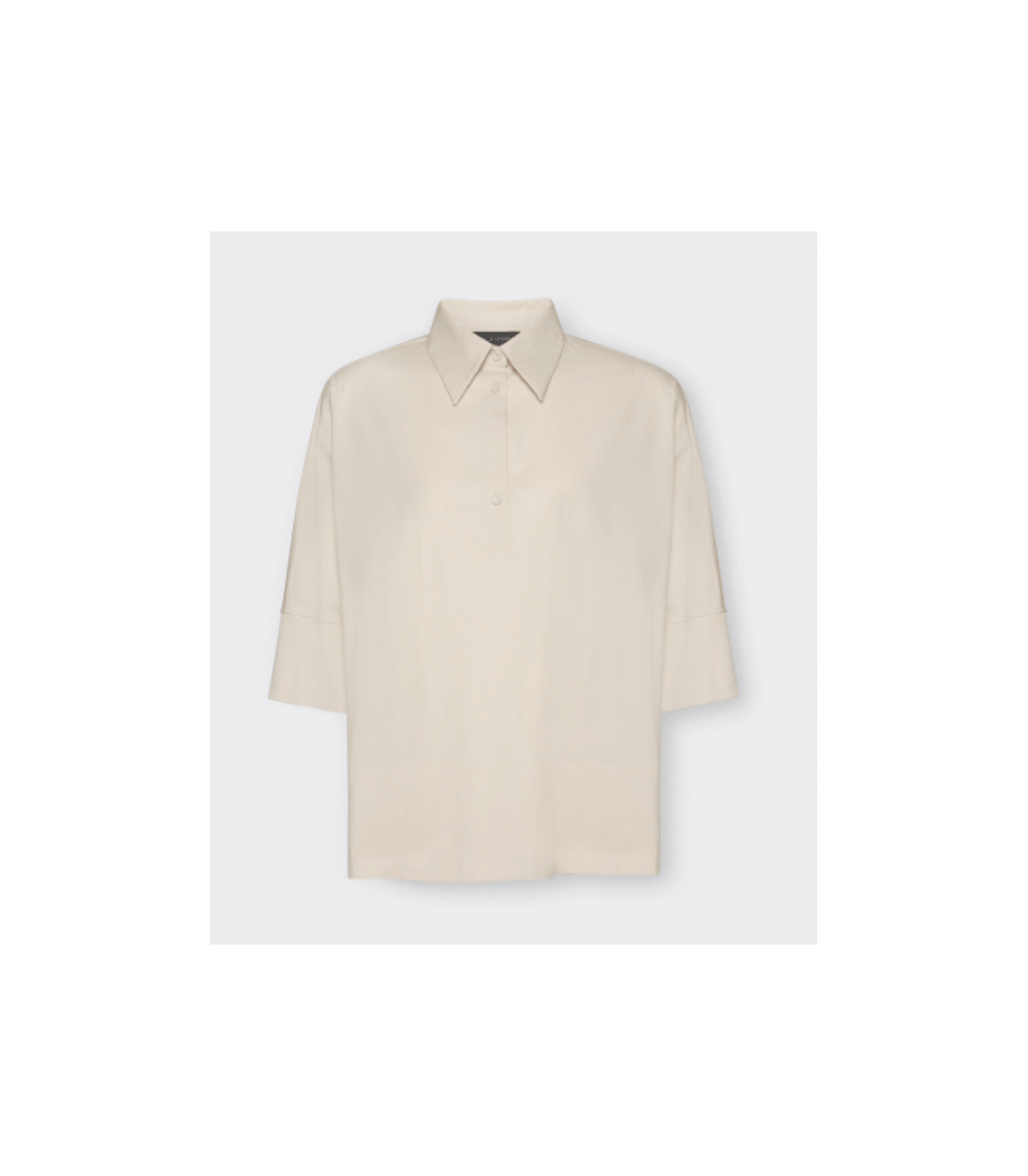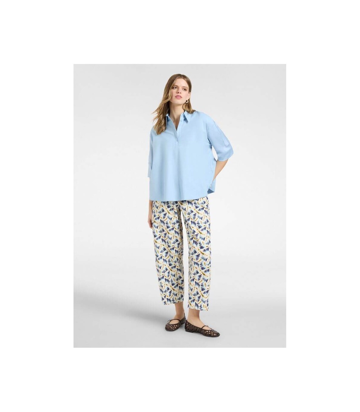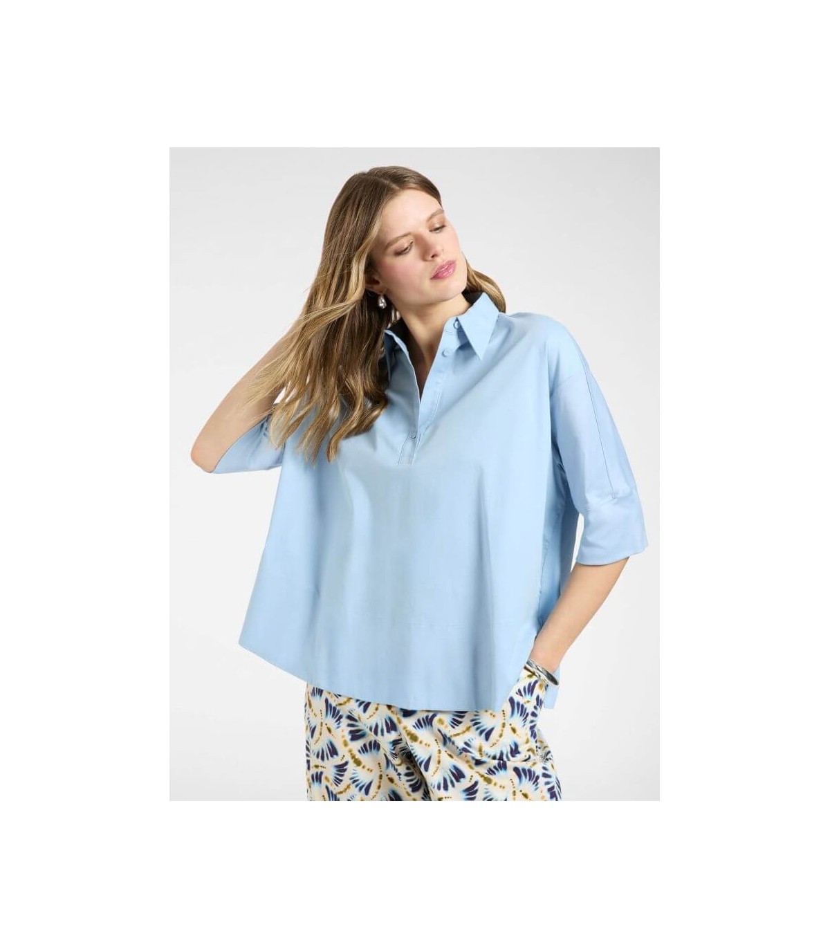 Blusa boxy de punto de algodón elástico, línea fluida con cuello elástico, cierre de botones y mangas tres cuartos, de la marca italiana Elena Mirò.