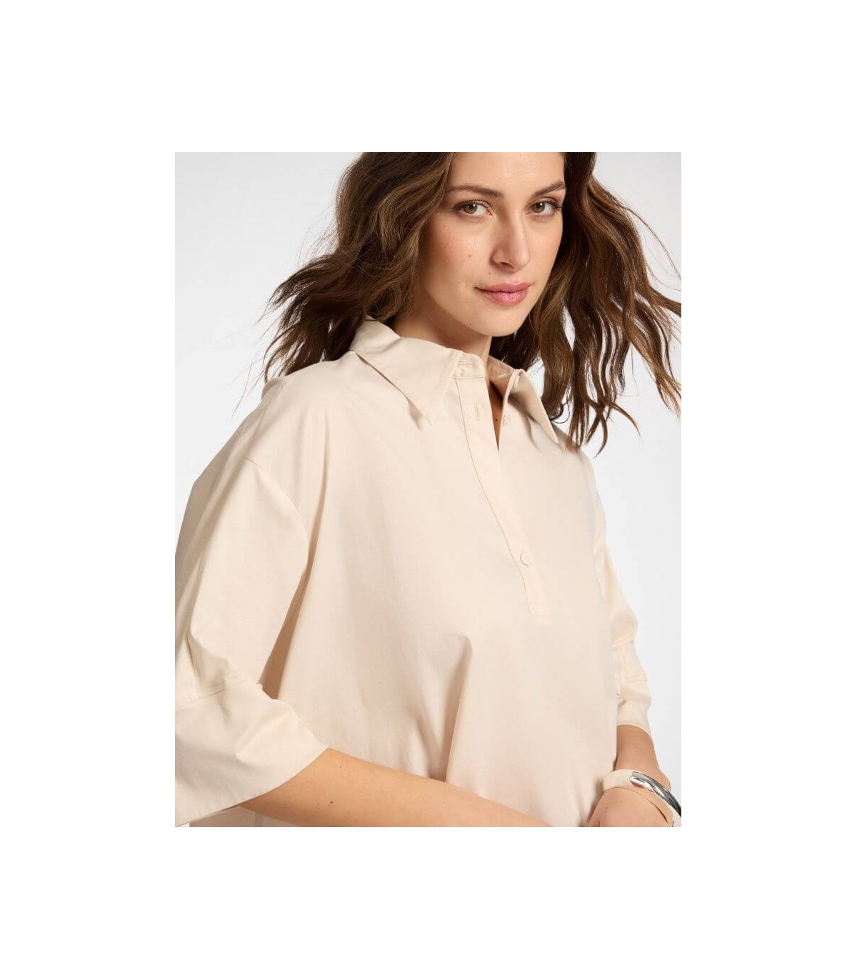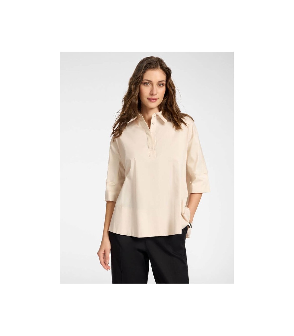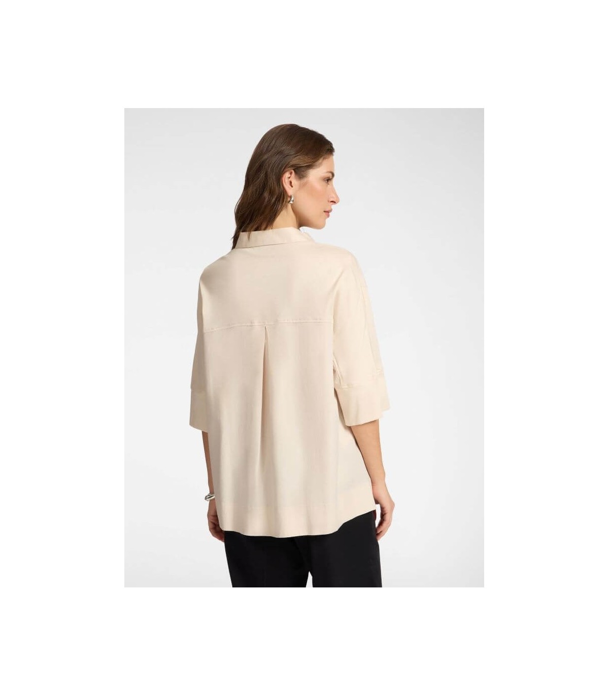 Blusa boxy de punto de algodón elástico, línea fluida con cuello elástico, cierre de botones y mangas tres cuartos, de la marca italiana Elena Mirò.