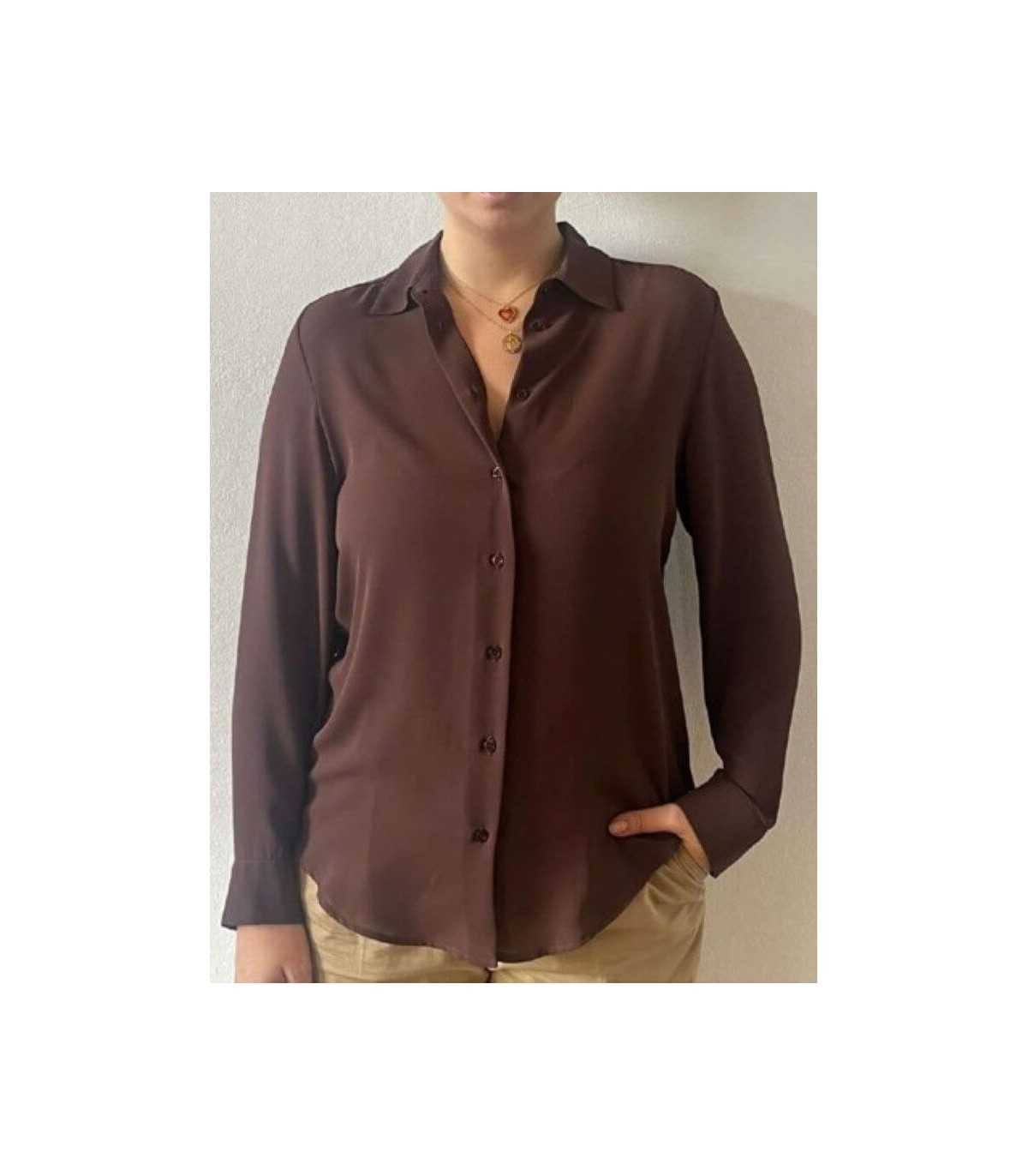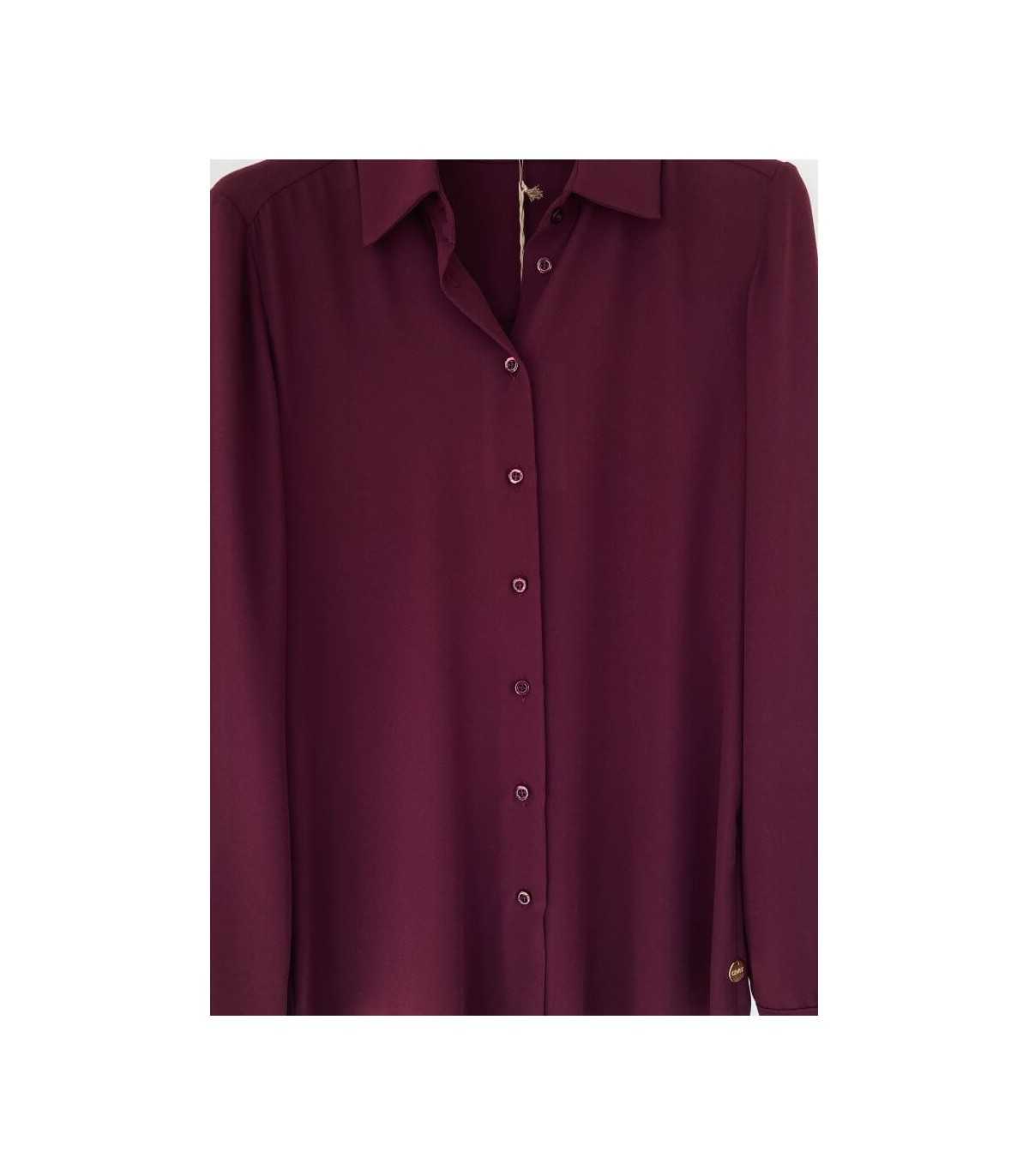 Blusa básica, cuello camisero con cierre de botones, manga larga terminada en puño y terminación del bajo con puntas redondeadas, de la marca española Civit.