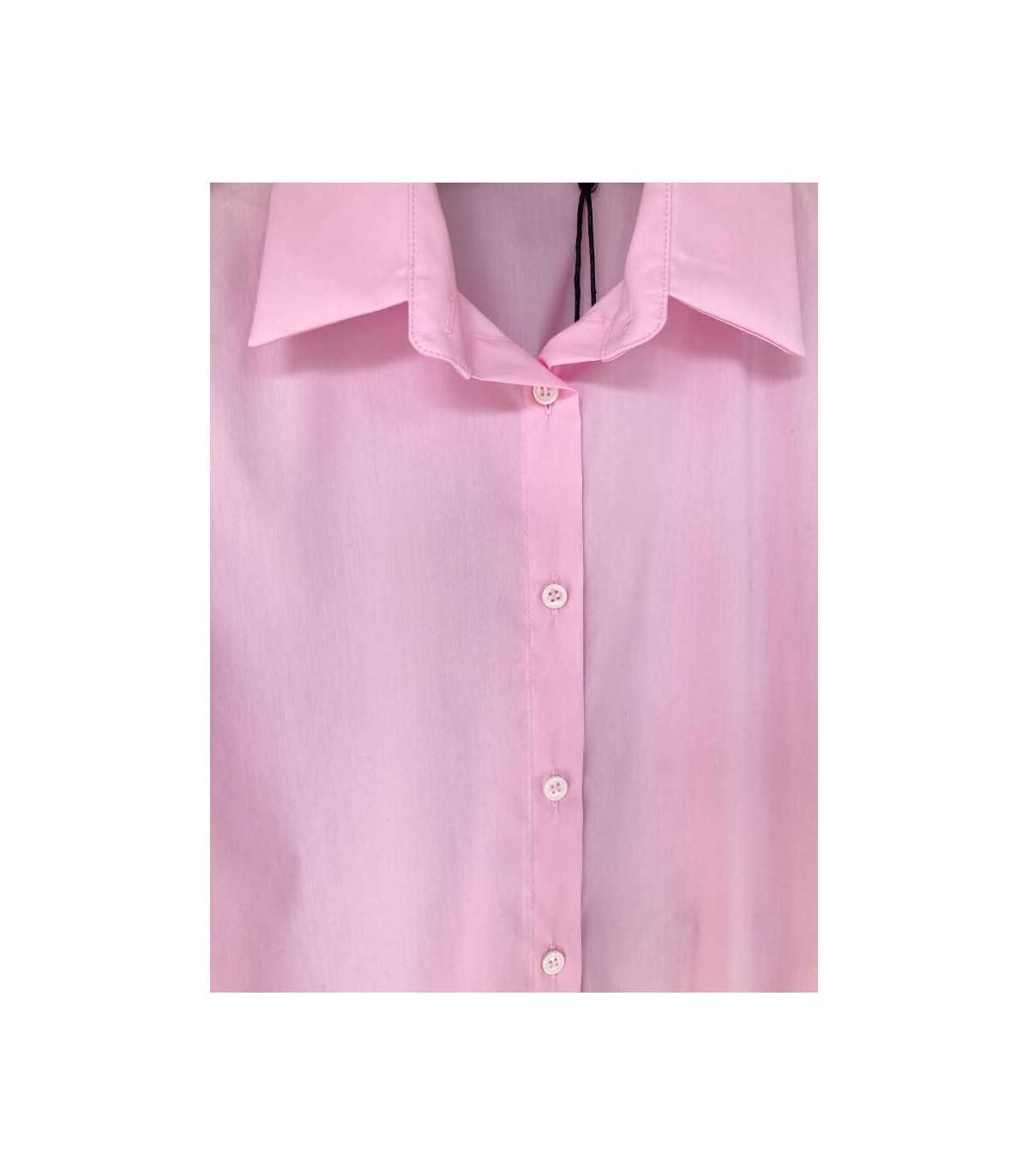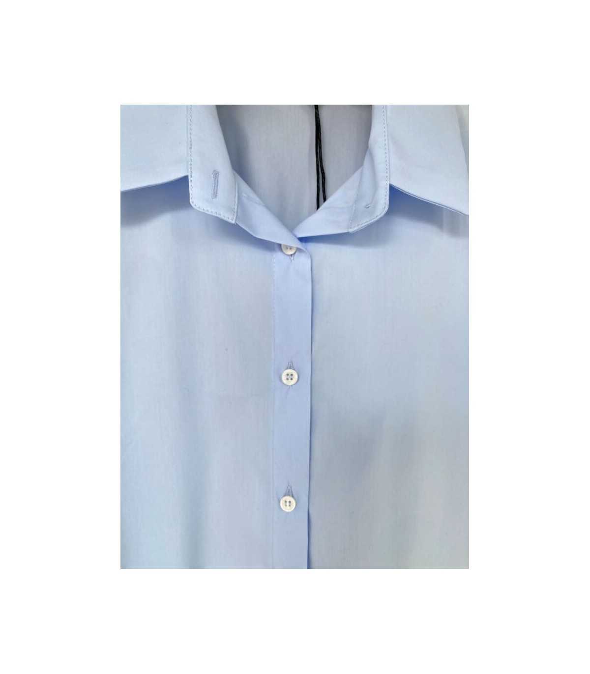 Camisa básica, tejido de popelín elástico, cuello camisero con cierre de botones, puño de camisa y línea recta, de la marca española Trovels.
