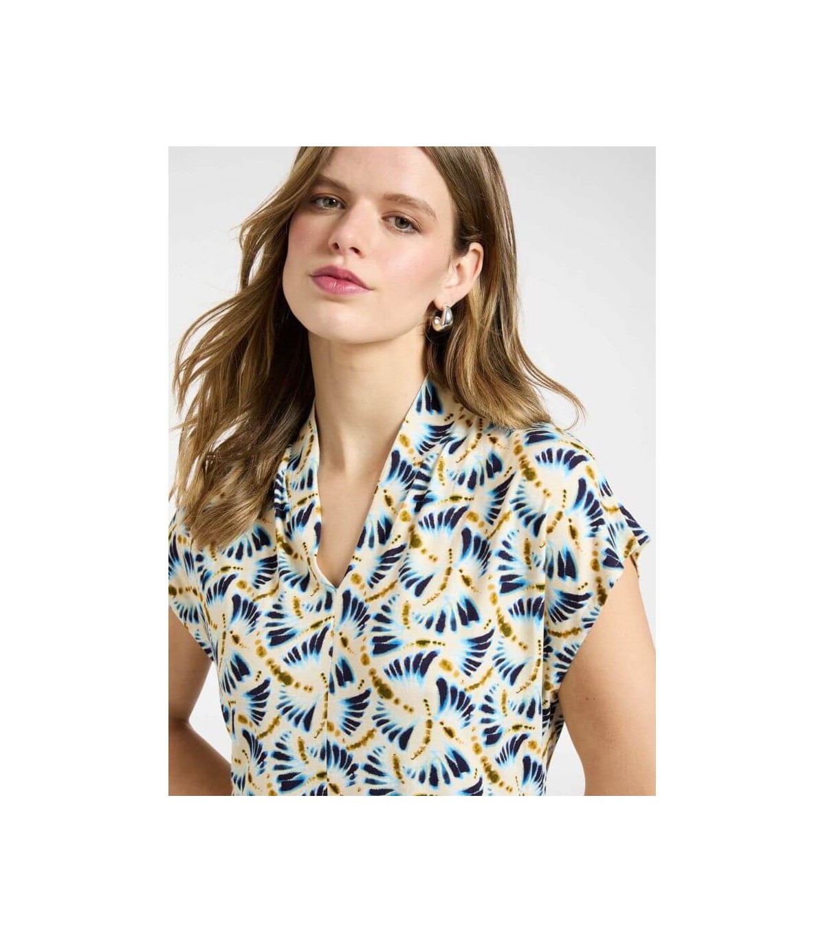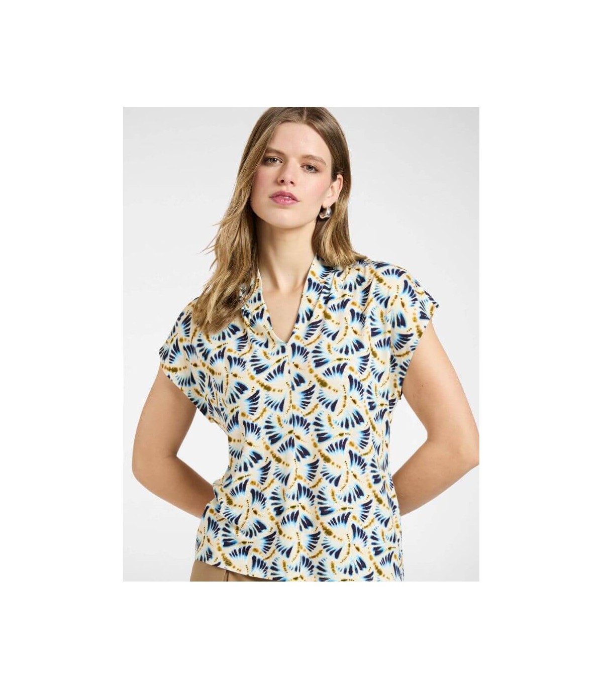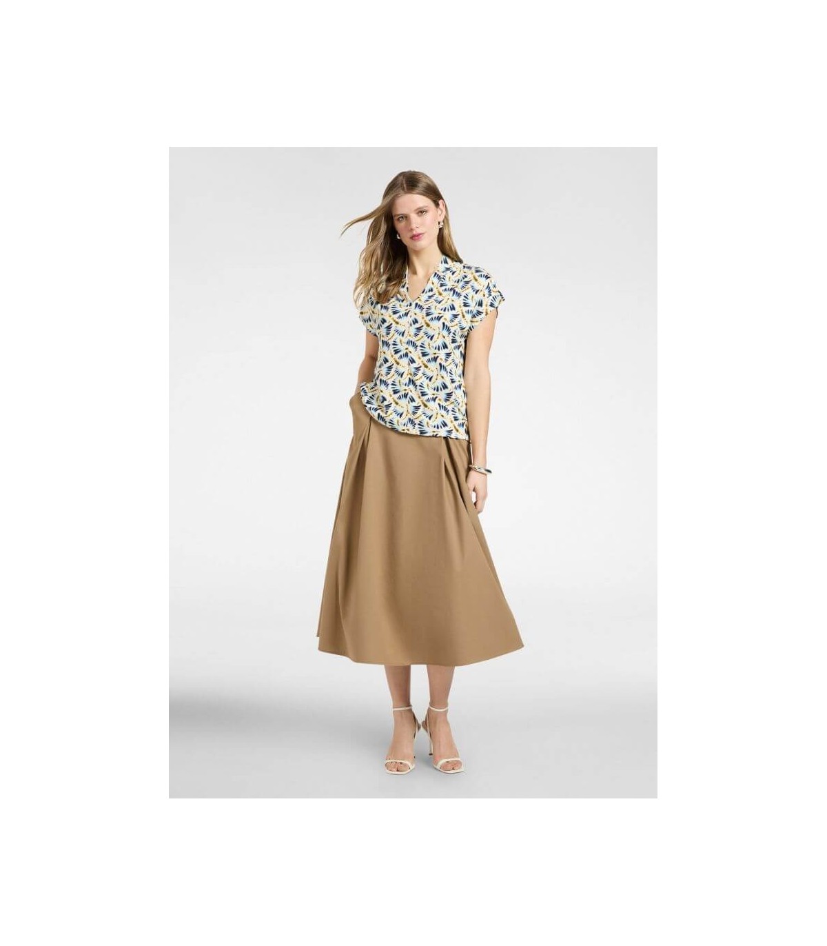 Top de punto de viscosa con estampado, escote en v, mangas cortas y ajuste regular, de la marca italiana Elena Mirò.
