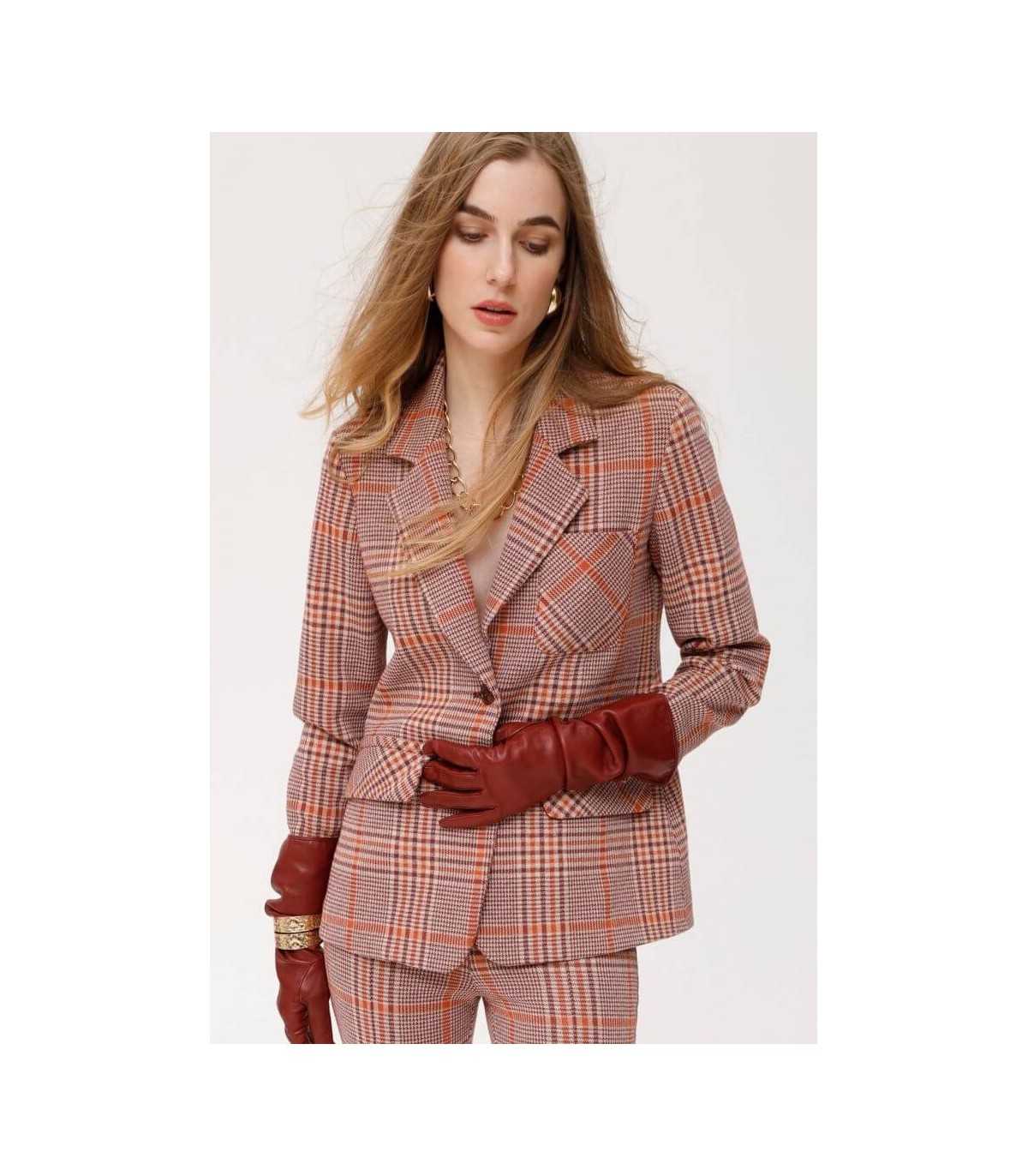 Chaqueta entallada con bolsillos de plastón en punto multicolor, cuello solapa con cierre de dos botones y forrada, de la marca española Oky.