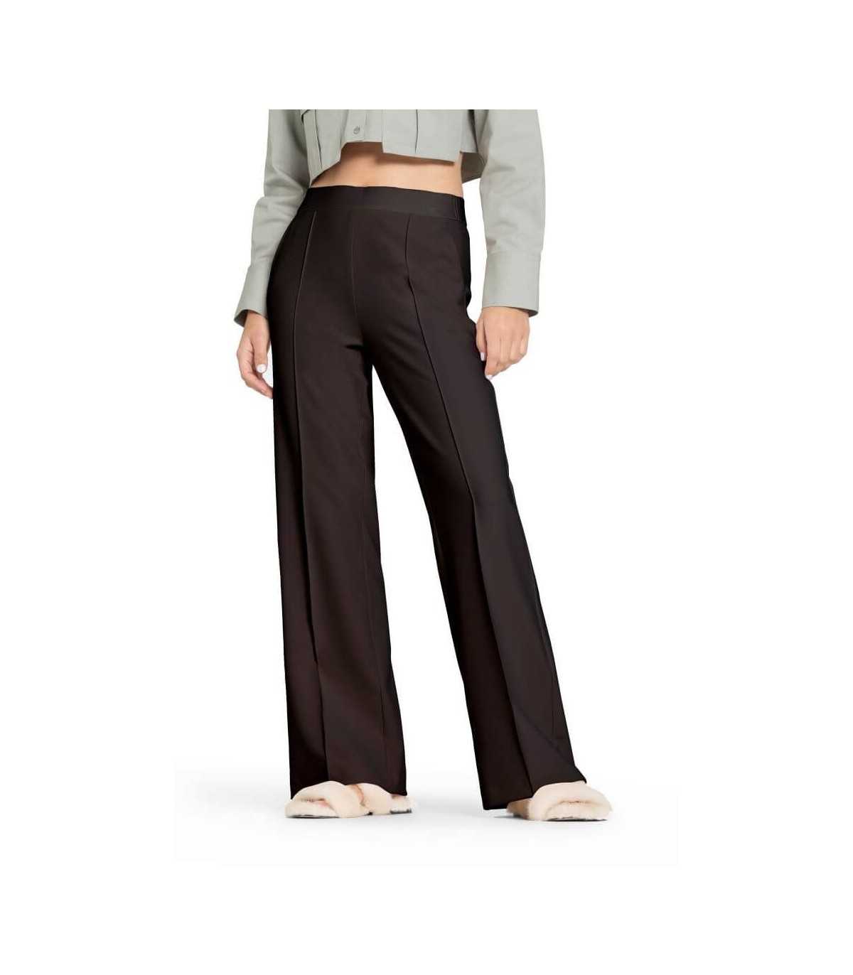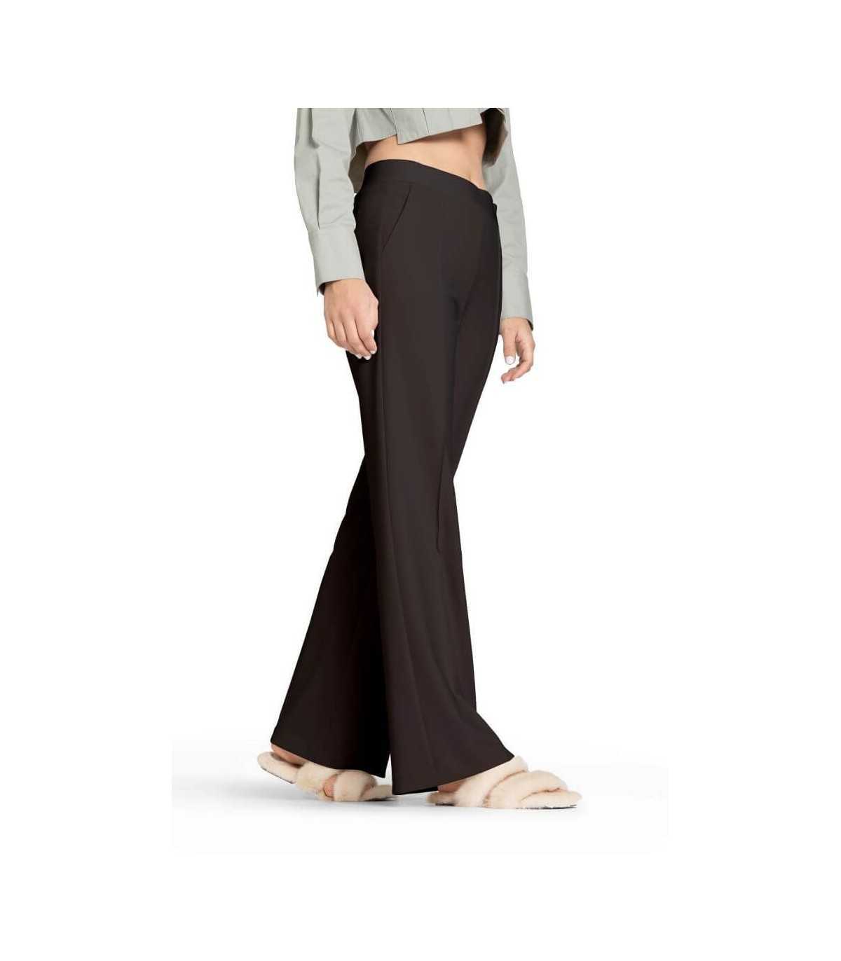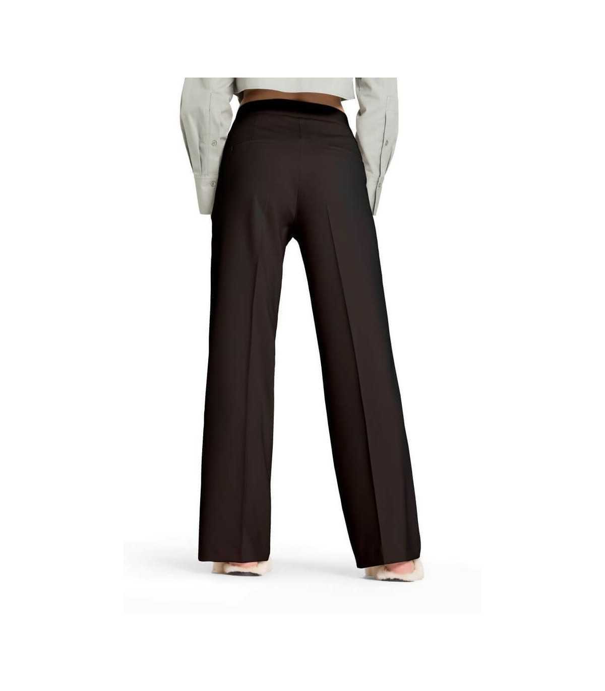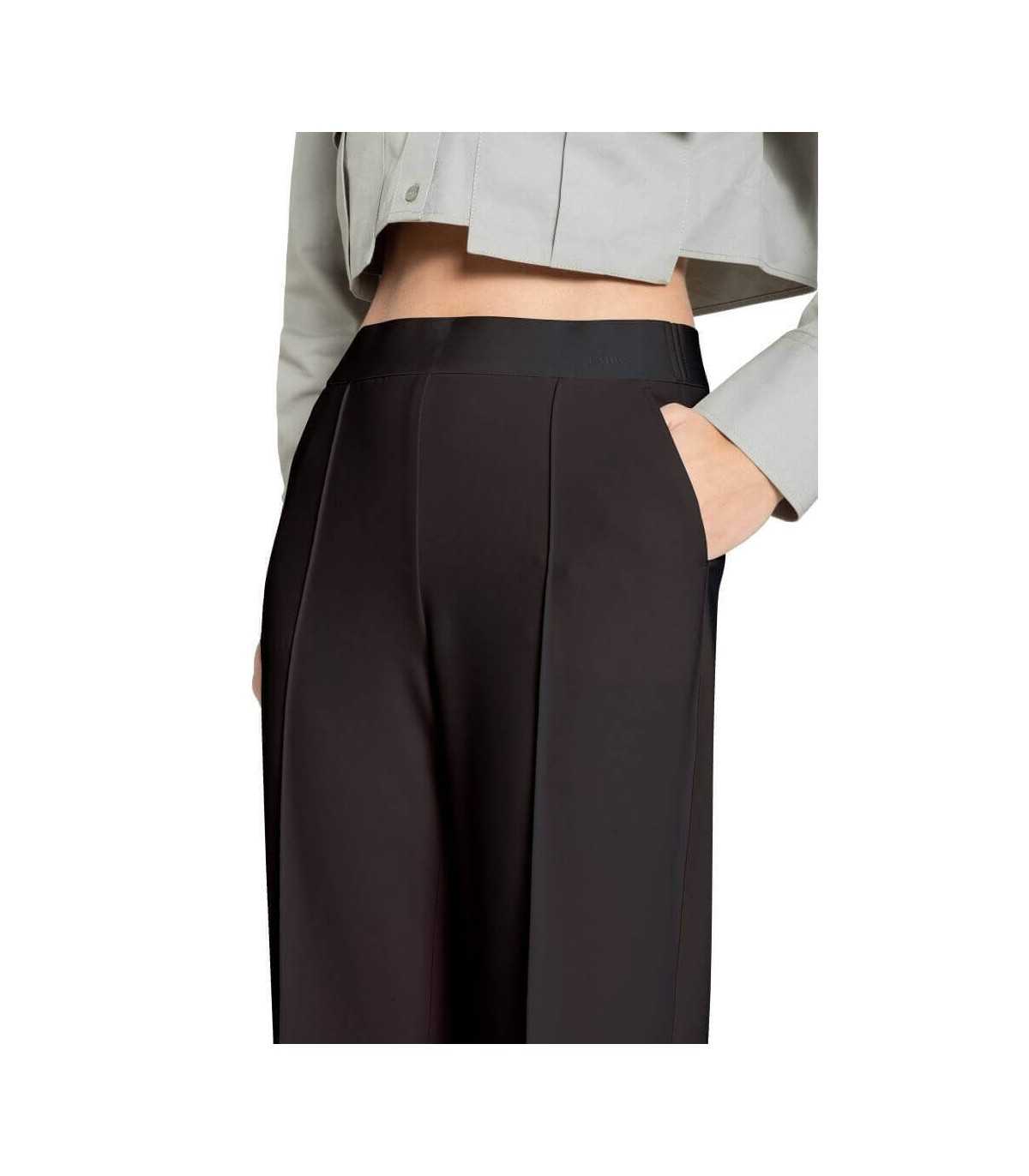 Pantalón palazzo, color marrón en tejido fluido de poliéster elástico, nervio delantero, bolsillos laterales, bolsillos ojal traseros y cintura elástica, de la marca alemana Cambio.