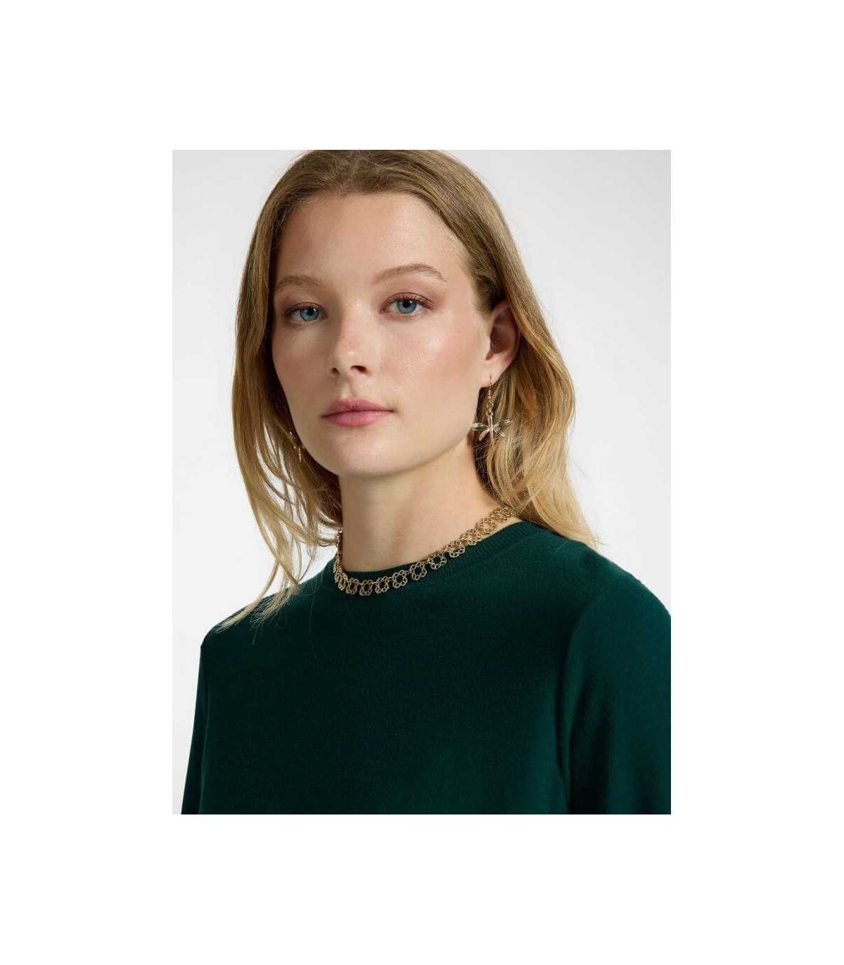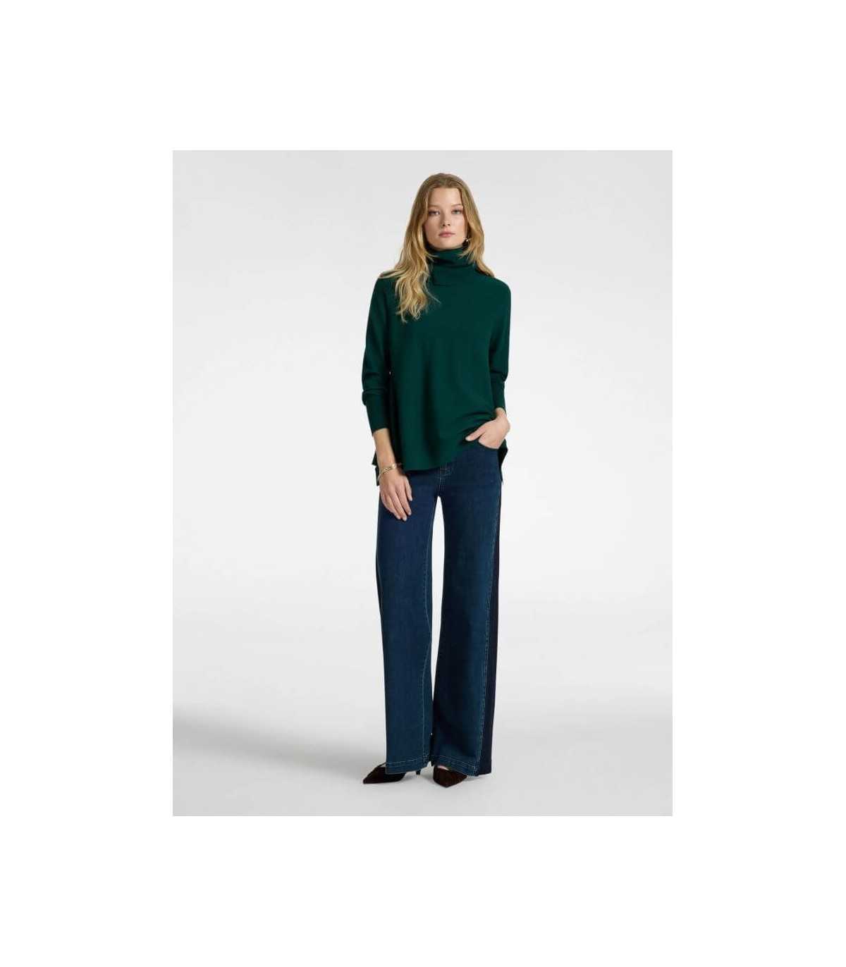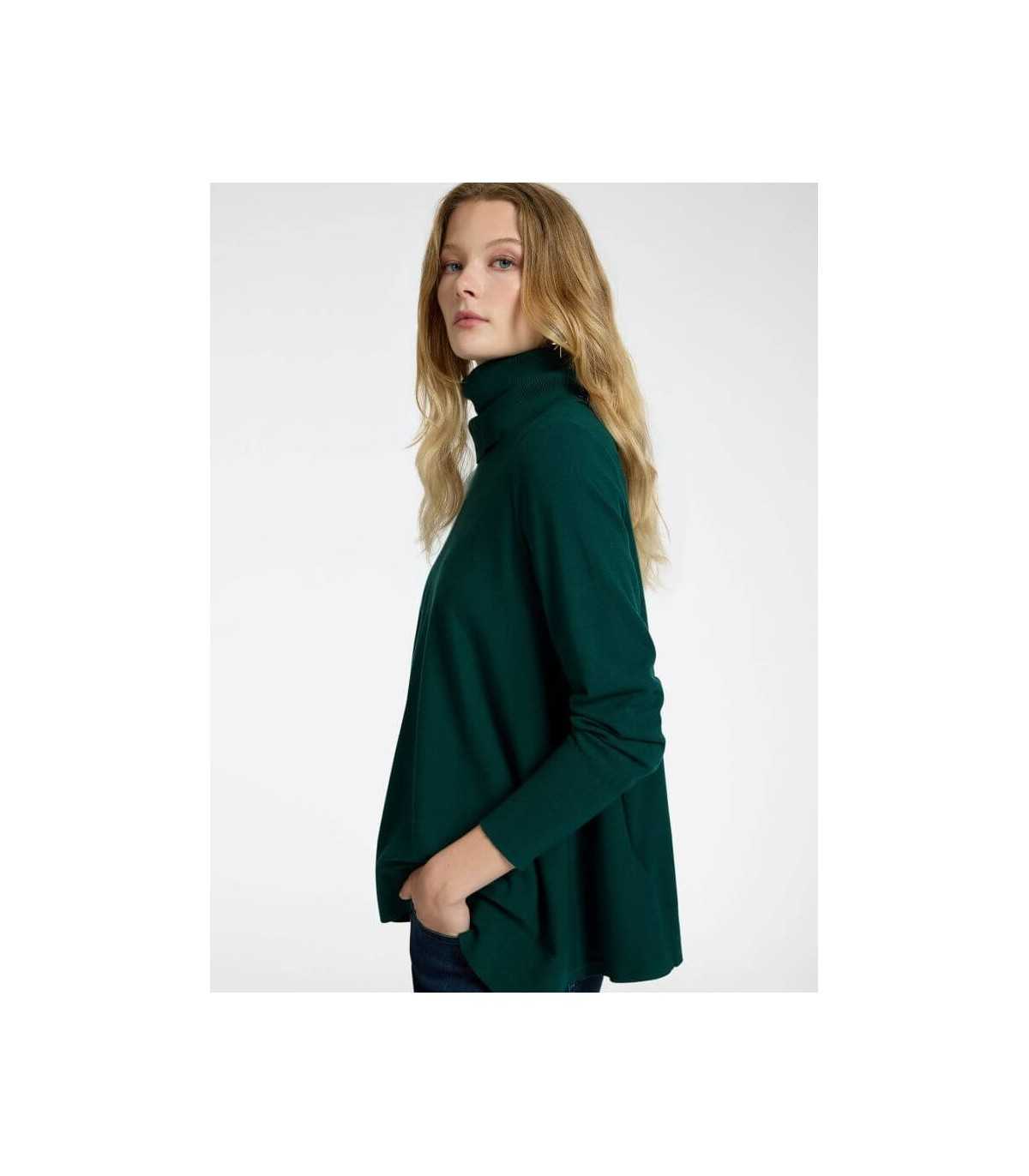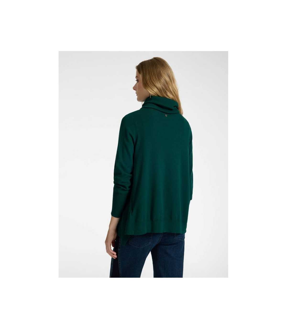 Suéter holgado en color verde laurel, corte amplio con puntas en los laterales, cuello alto acanalado desmontable y manga larga, de la marca italiana Elena Mirò.