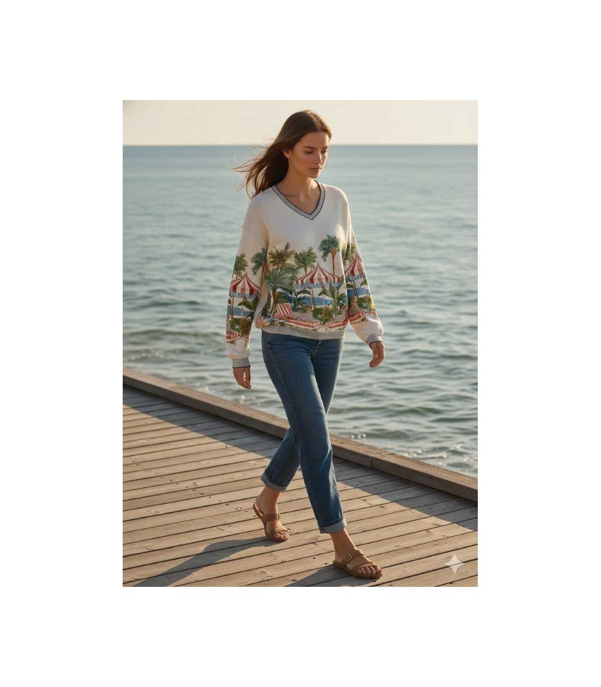 Suéter Estampado Palmeras Vilagallo Mujer