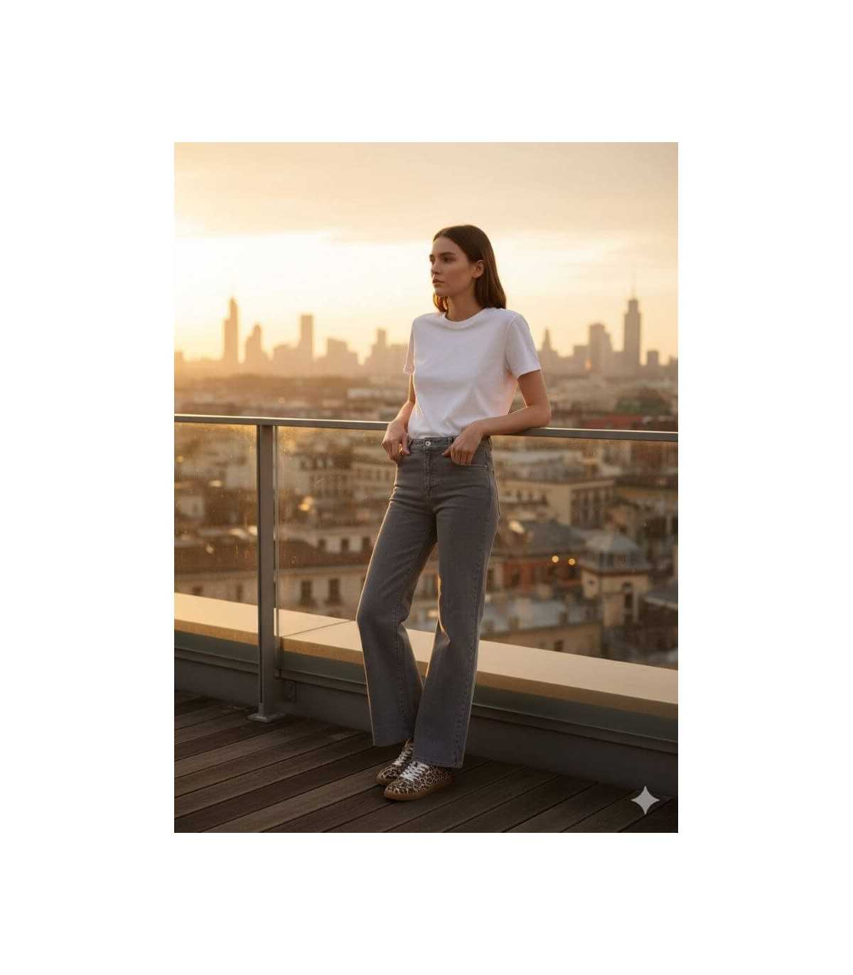 Pantalón vaquero de algodón elástico, pierna ancha, largo cropped y cinco bolsillos, de la marca italiana Marella.