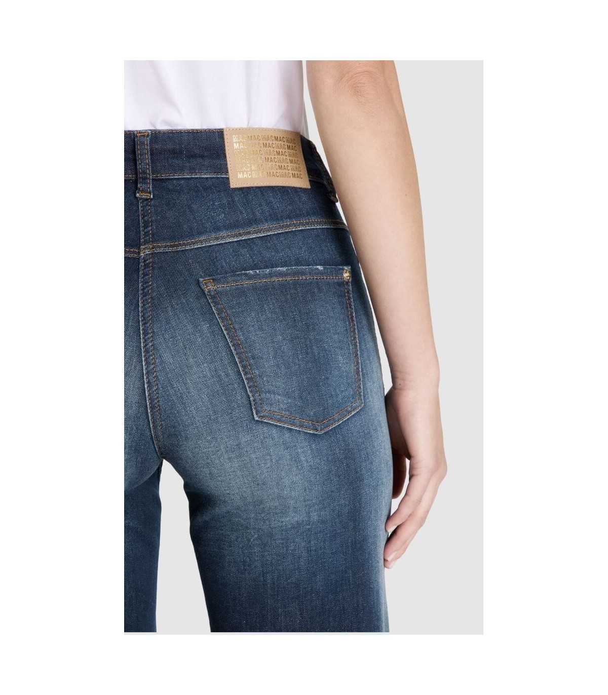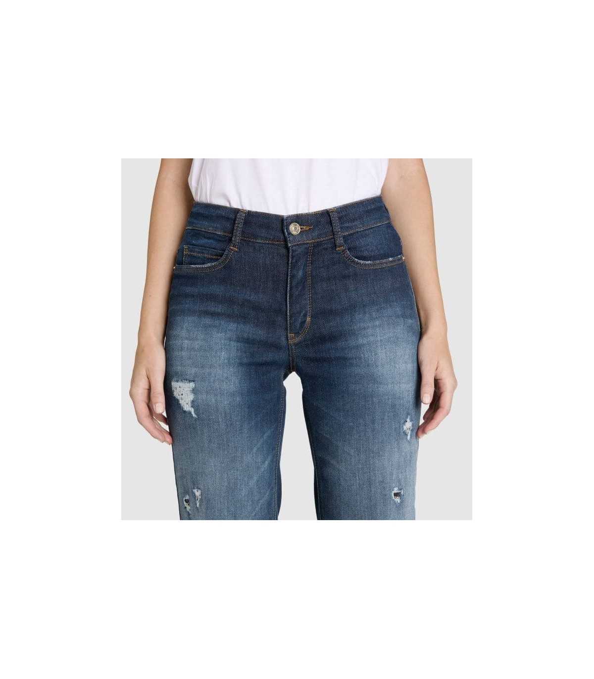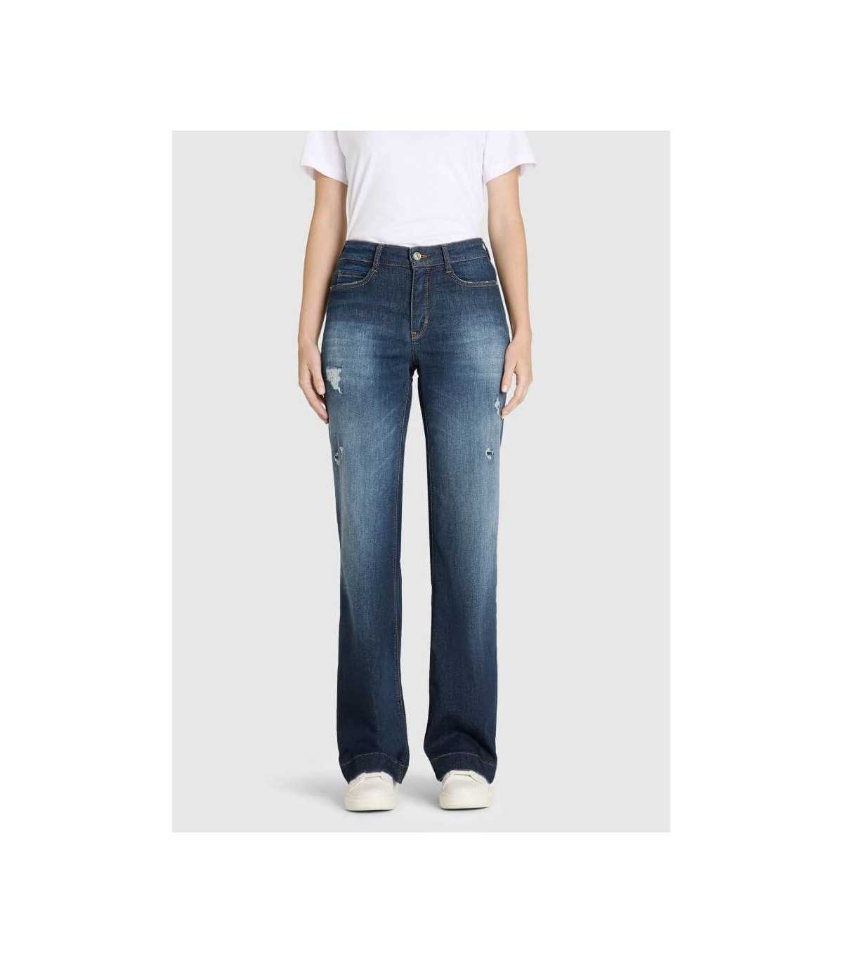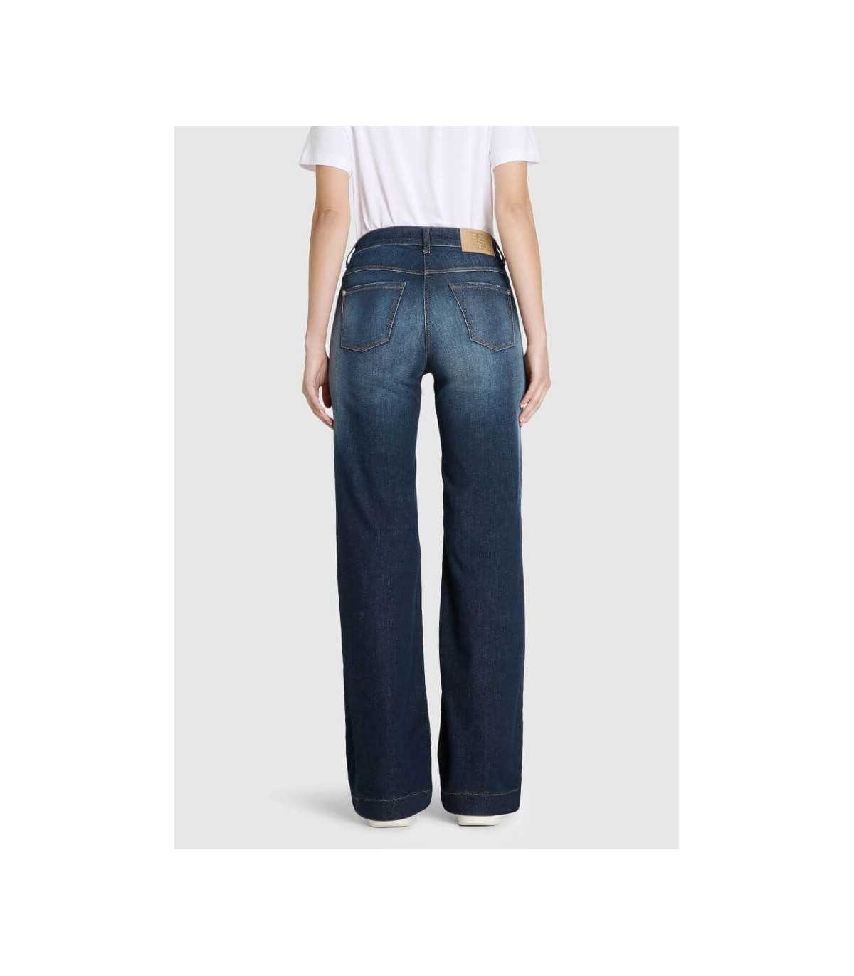 Pantalón línea trompeta, color azul, cinco bolsillos y superstretch, de la marca alemana Cambio.Composición 92% algodón, 6% elastomultiéster, 2% elastano.