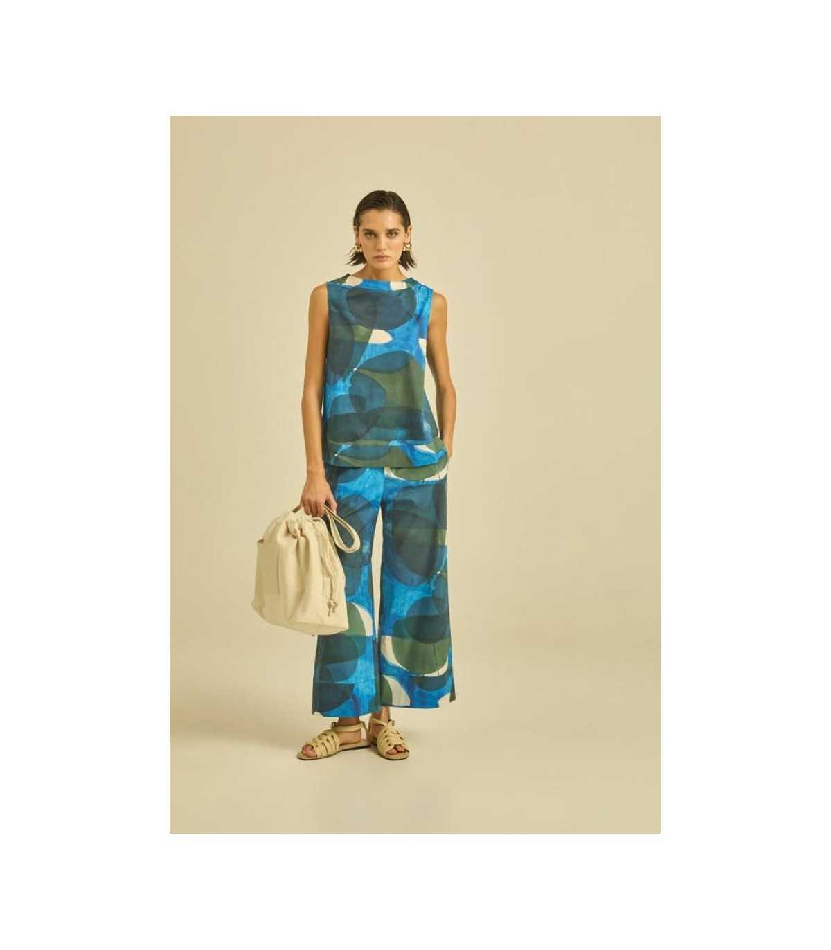 Pantalón Estampado Azules Maria Bellentani Mujer