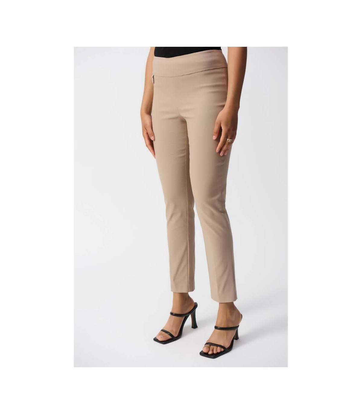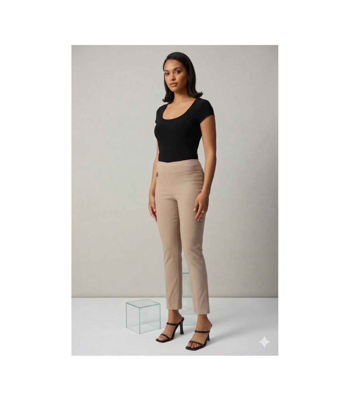 Pantalón básico con cintura elástica, color camel, sin bolsillos ni cremallera, de la marca canadiense Joseph Ribkoff.