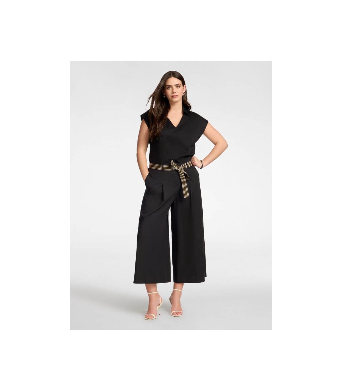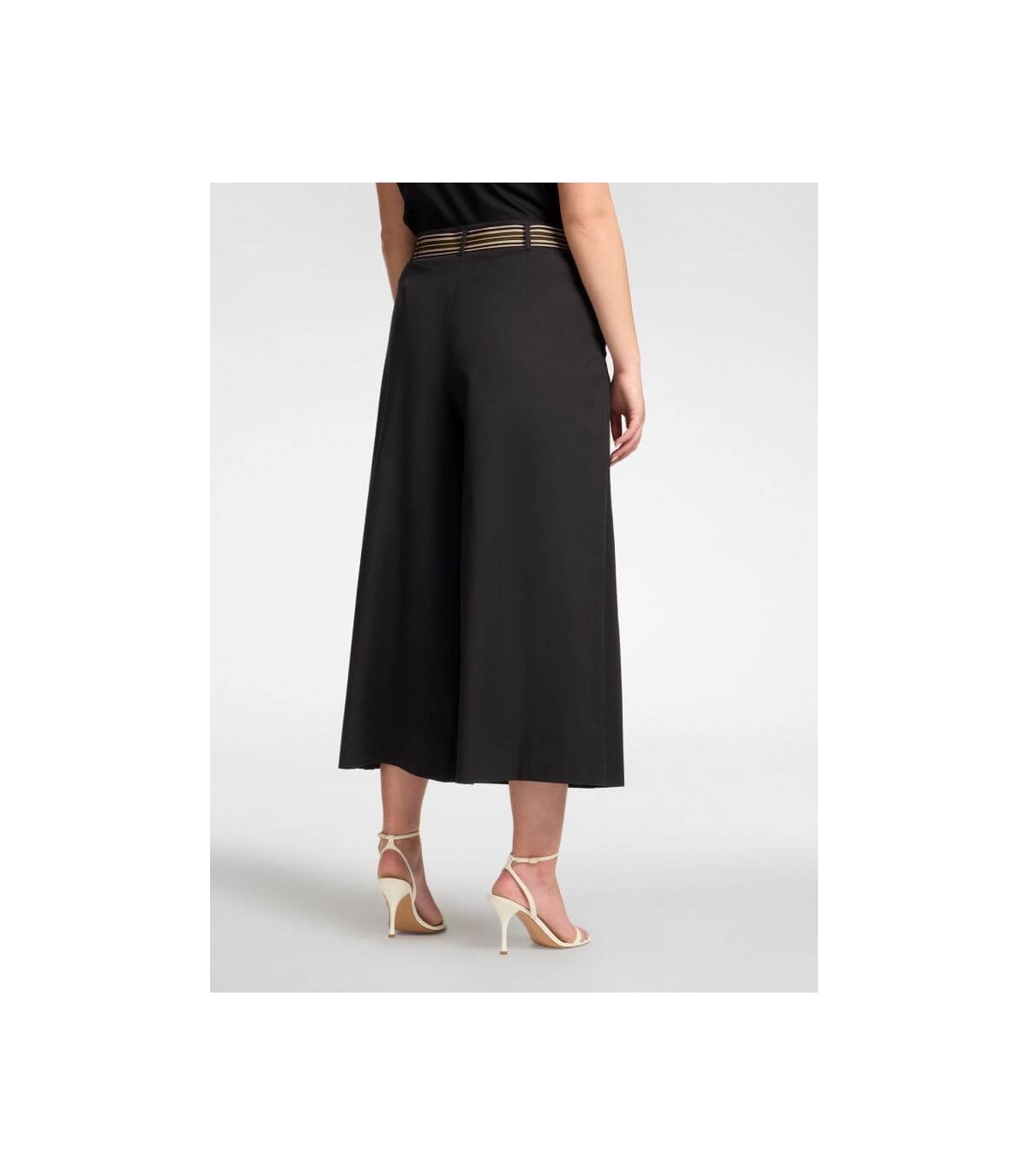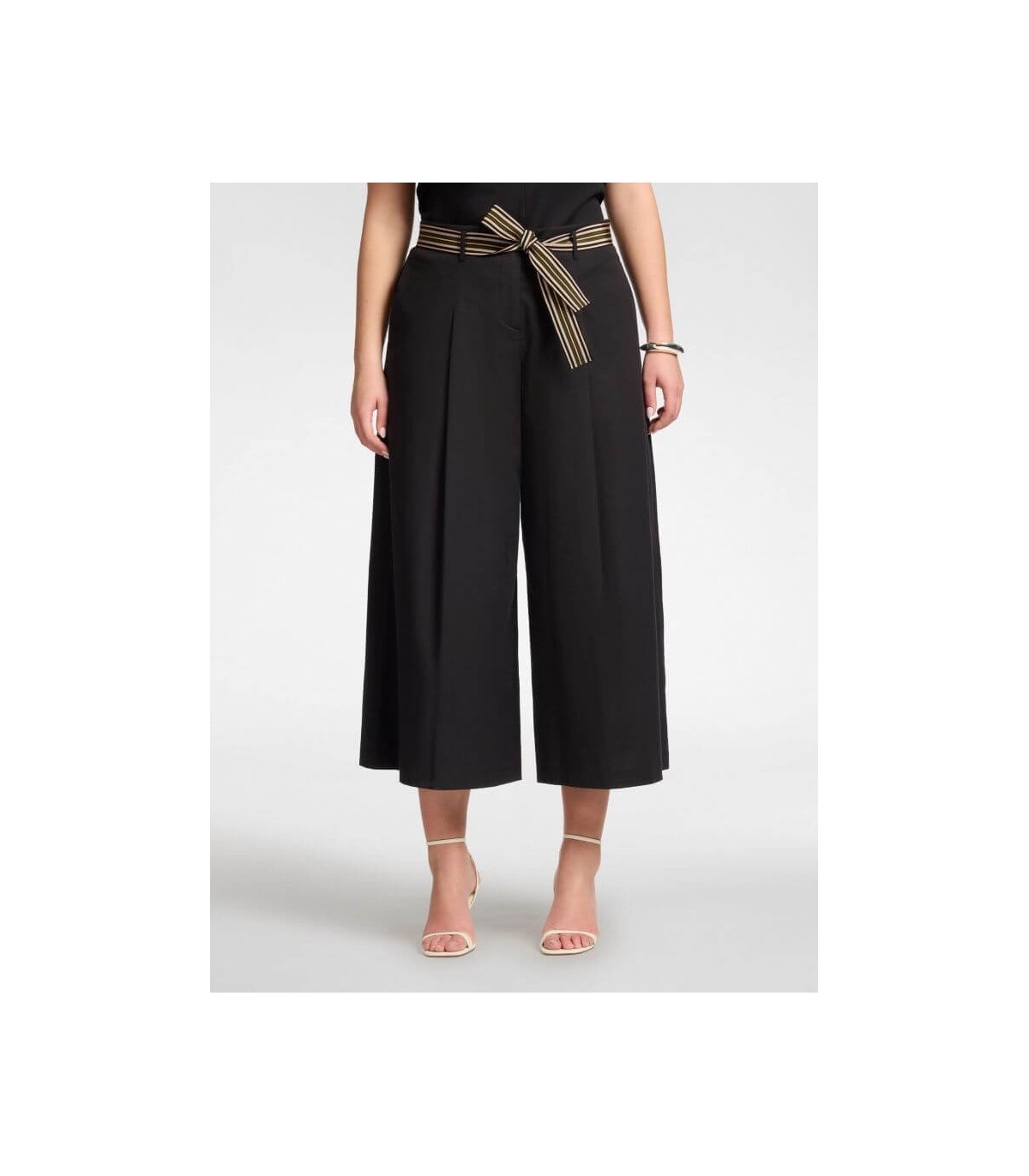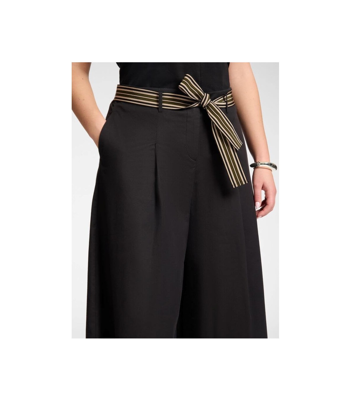 Pantalón cropped de popelina, corte palazzo con cintura alta y cinturón con lazo, de la marca italiana Elena Mirò.