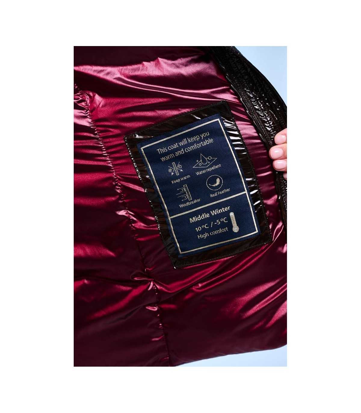 Composición 100% nailon. Interior 100% naylon. Relleno 90% plumón, 10% pluma. Pelo 100% racoon.