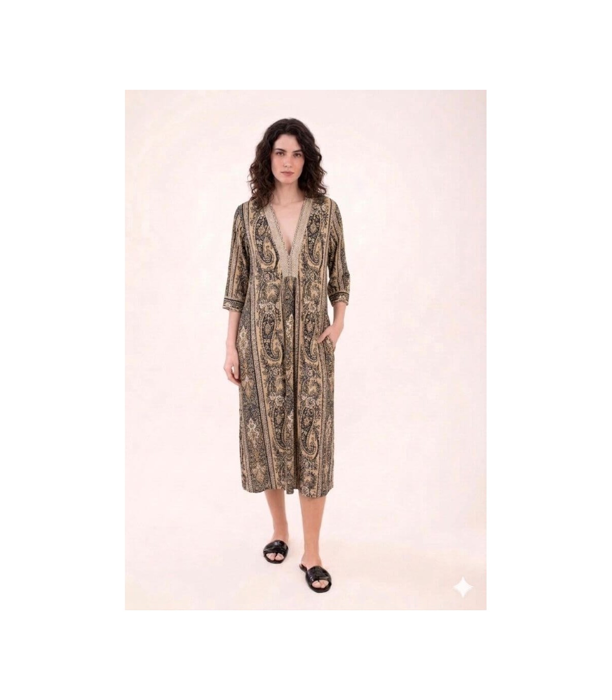 Vestido Estampado Beige Anna Mora Mujer